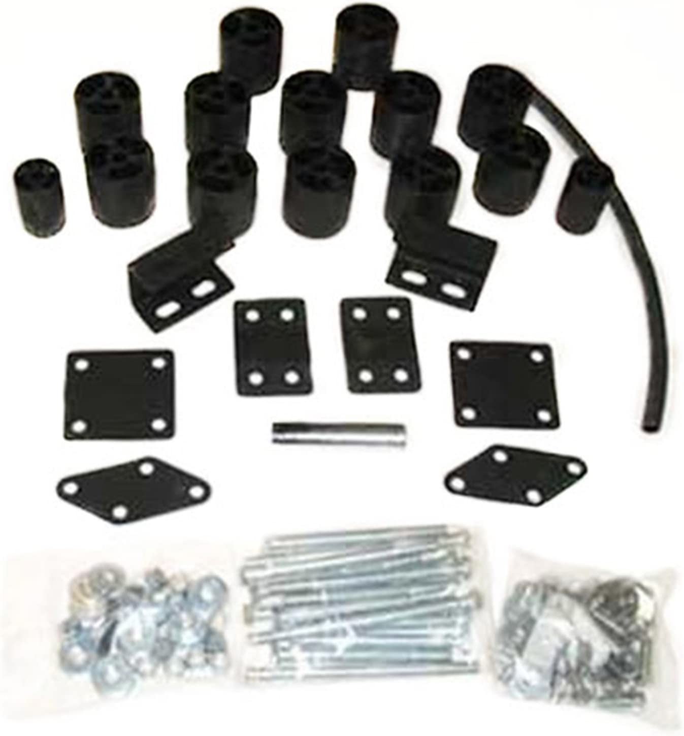 Performance Accessories 3-inch Body Lift Kit PN-60003 raises the vehicle for adding larger diameter tires, without altering the factory suspension system and OE ride characteristics. The kit includes high pressure fiberglass reinforced nylon lift blocks, 3/16 inch and 10-gage steel laser cut and powder coated bumper relocation brackets, a CNC machined and zinc plated steering extension, high strength hardware, and extension brackets. A set of urethane wheel-well extensions (Gap-Guards PN-6619) are available separately, and are used to conceal any gaps between the body and frame. This system can be installed in 8 hours and comes complete with everything necessary for installation. Additional Information: Fiberglass reinforced nylon body blocks CNC machined & zinc plated steering extension Laser cut and powder coated relocation brackets Laser cut and zinc plated fittings and brackets High strength hardware included Made in the U.S.A.