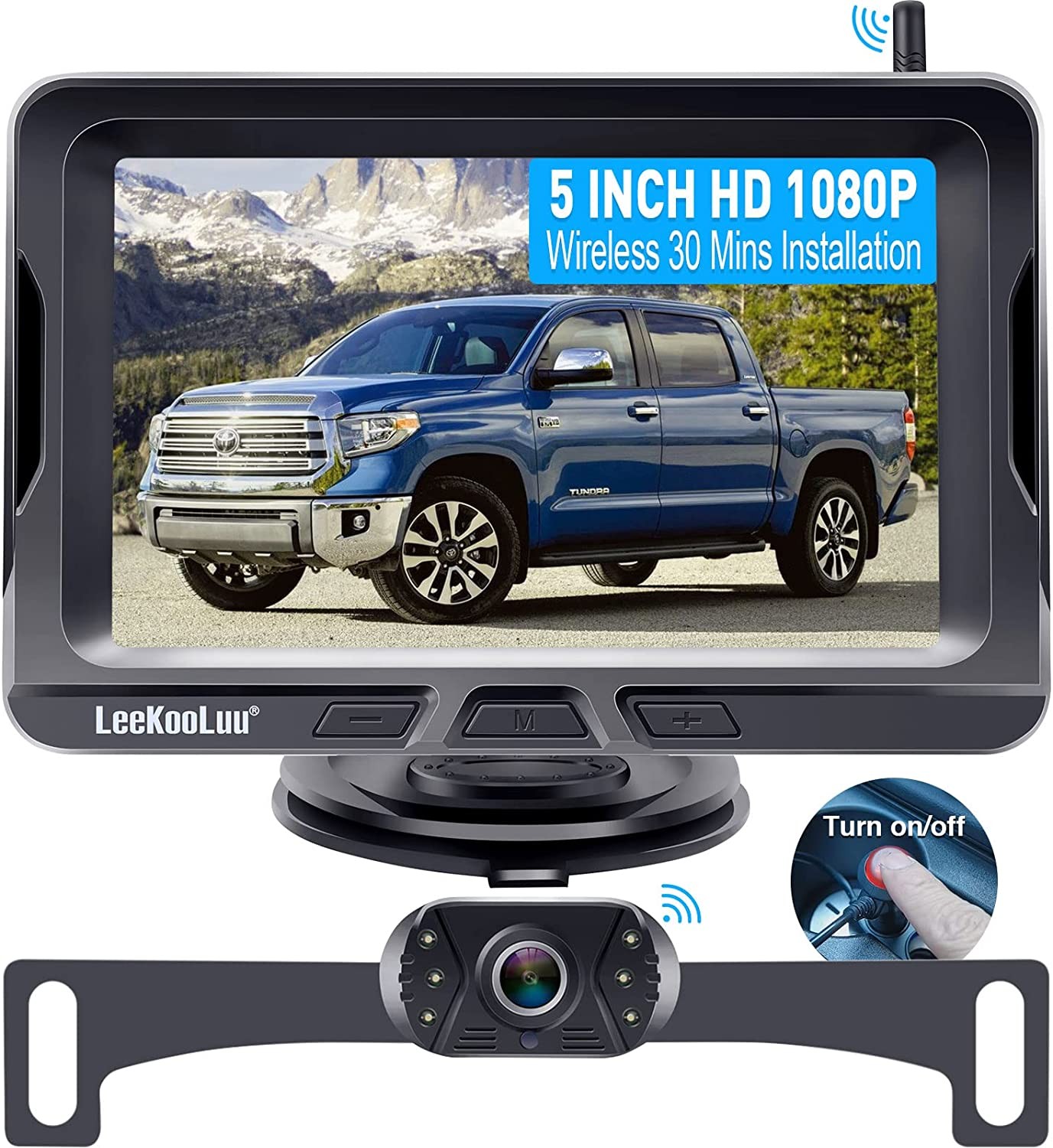 Wireless Backup Camera 5 Inch Rear View Monitor Kit HD 1080P Bluetooth Reverse Cameras for Truck Car Van Camper Two Channels Waterproof Night Vision DIY Parking Guide Lines LeeKooLuu LK2