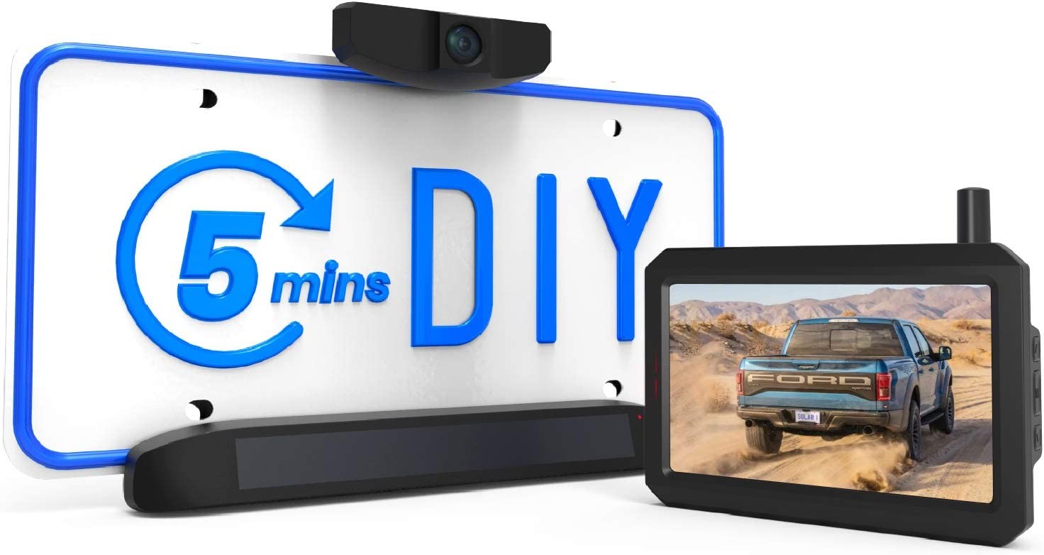 AUTO-VOX Solar 1 Wireless Backup Camera for Car, 5Mins DIY Installation, Back Up Camera System Wireless with Digital Signal, License Plate Rearview Camera with 5" Monitor for Trucks/Trailer/RV
