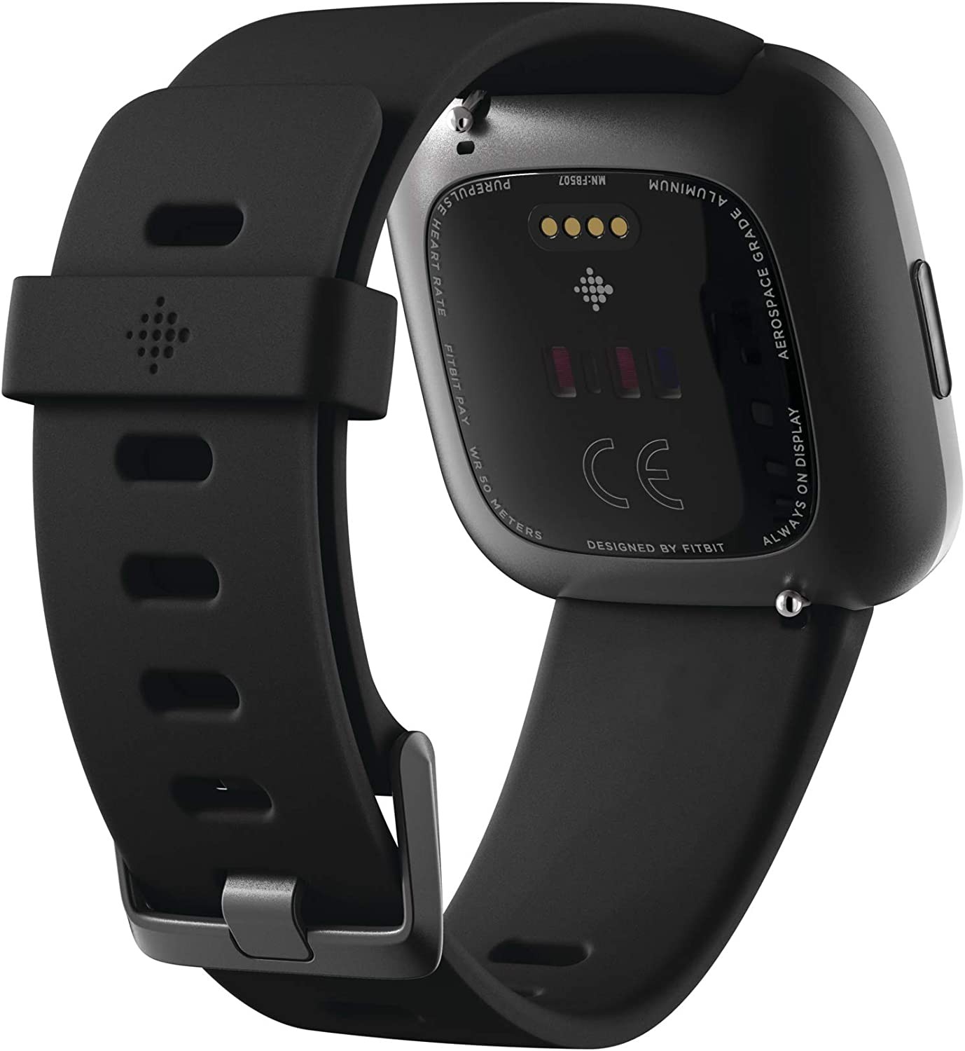 Fitbit Versa 2 Health and Fitness Smartwatch with Heart Rate, Music, Alexa Built-In, Sleep and Swim Tracking, Black/Carbon, One Size (S and L Bands Included)