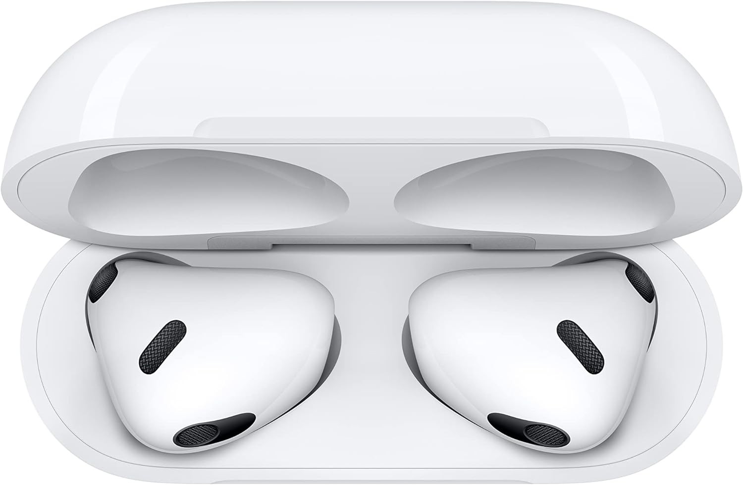 PERSONALIZED SPATIAL AUDIO — With sound that suits your unique ear shape along with dynamic head tracking, AirPods (3rd generation) deliver an immersive listening experience that places sound all around you. You can also listen to select songs, shows, and movies in Dolby Atmos.<br>SWEAT AND WATER PROTECTION — AirPods and the Lightning Charging Case is rated IPX4 sweat and water resistant, so they’ll withstand anything from heavy workouts to rain.<br>A POWERFUL CASE — Recharge your AirPods with the portable Lightning Charging Case for power throughout the day, wherever you go.<br>PINCH-PERFECT CONTROL — The force sensor lets you control your entertainment as well as answer, end, and mute or unmute yourself on calls.<br>LONG BATTERY LIFE — Up to 6 hours of listening time with one charge, and up to 30 hours total listening time with the Lightning Charging Case.<br>ALWAYS-ON “HEY SIRI” — Say “Hey Siri” to activate your favorite personal assistant and stay on top of everyday tasks like playing music, making calls, getting directions, or checking your schedule.<br>MAGICAL EXPERIENCE — Place AirPods near your iPhone or iPad and tap Connect to pair with every device in your iCloud account. Audio seamlessly switches between devices and automatically pauses when you take AirPods out of your ears.<br>AUDIO SHARING — Audio Sharing lets you connect two sets of AirPods effortlessly to your iPhone, iPad, iPod touch, or Apple TV, with individual volume control for each set.<br>LEGAL DISCLAIMERS — This is a summary of the main product features. See “Additional information” to learn more.