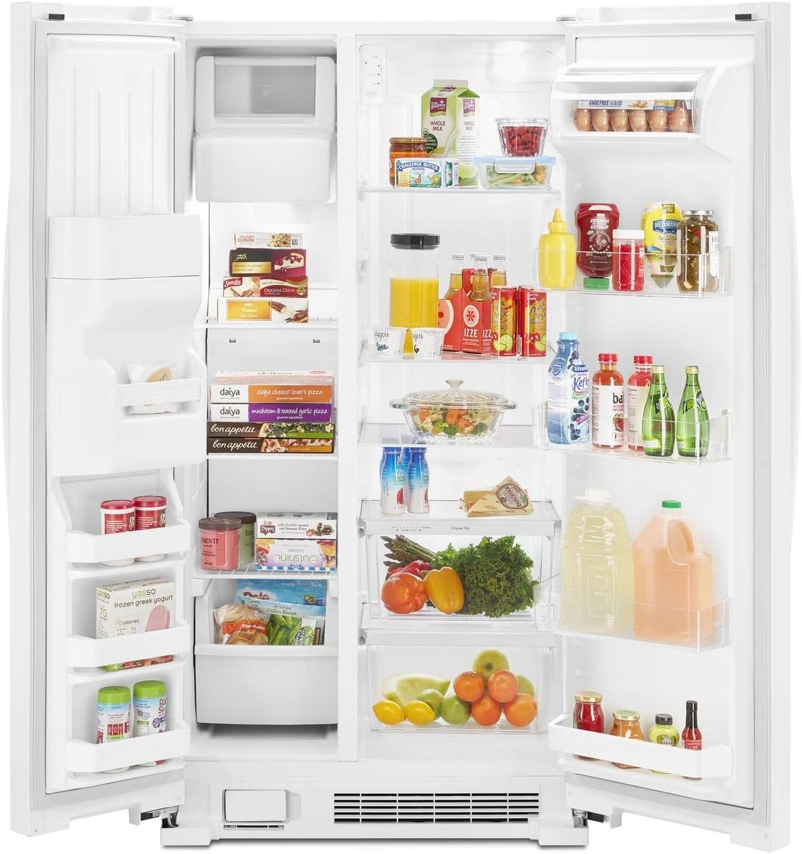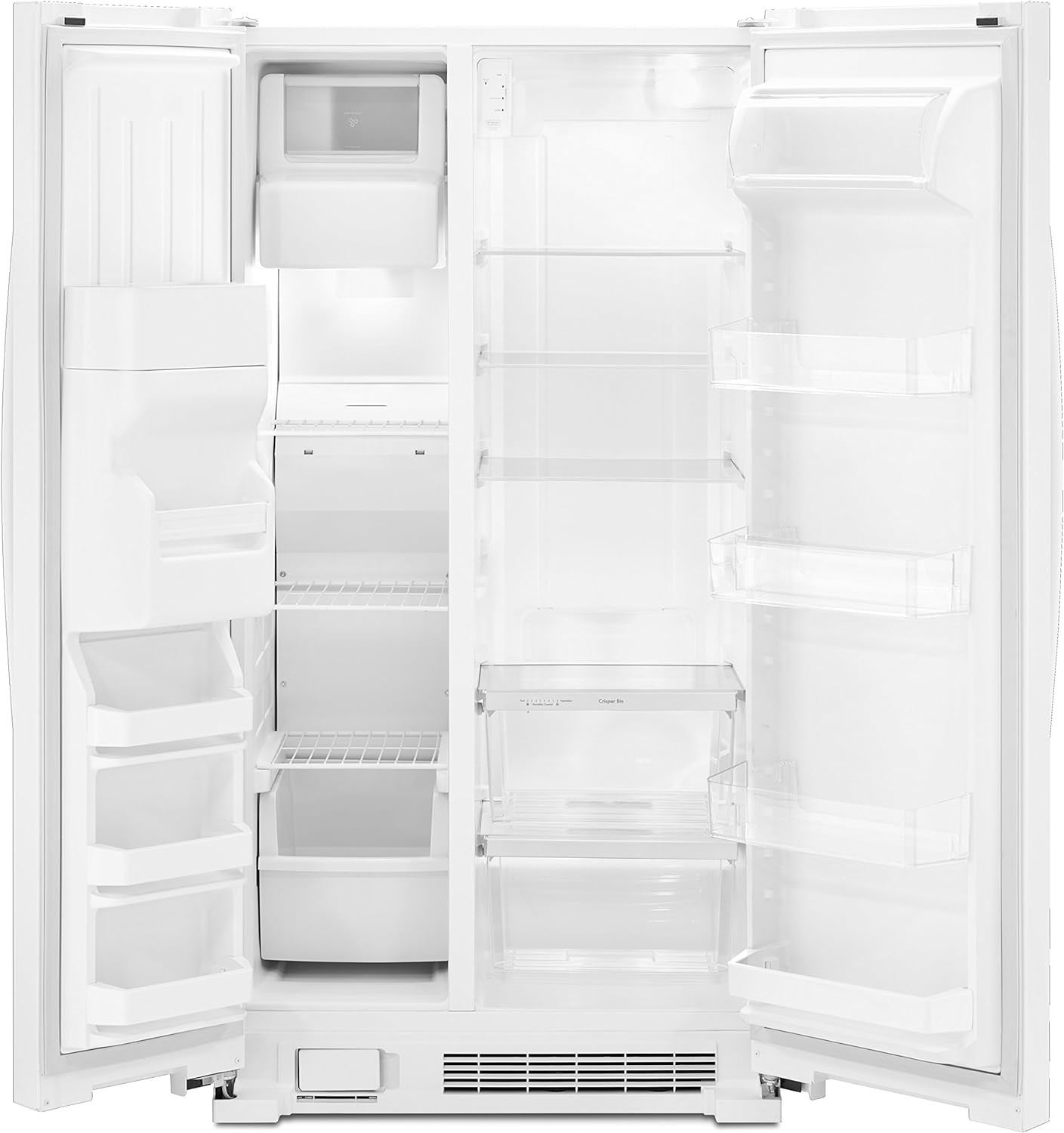 SLIM FREEZER AND REFRIGERATOR COMBO: 25 cubic ft. side-by-side fridge and freezer provides ample fresh and frozen food storage in a slim design and features a dual pad ice and water dispenser