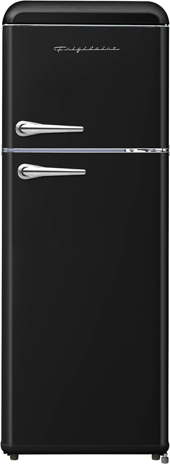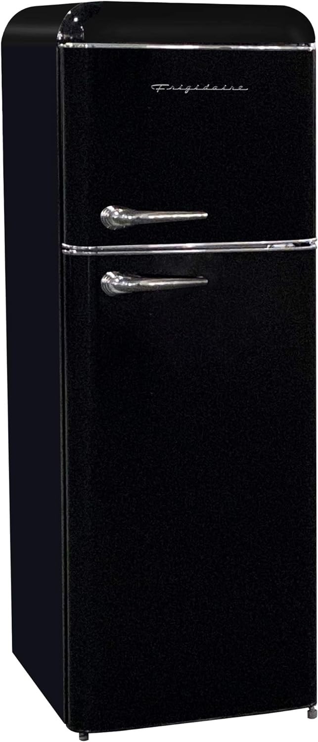 FRIGIDAIRE EFR756-BLACK EFR756, 2 Door Apartment Size Retro Refrigerator with Top Freezer, Chrome Handles, 7.5 cu ft, Black