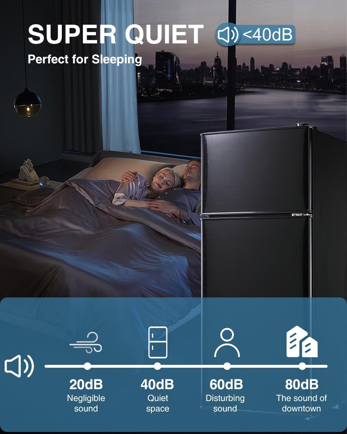 Freezer on Top: The large capacity of 3.5 Cu.Ft is divided into refrigerator and freezer areas, which are more spacious than ordinary mini refrigerators and could keep food in a fresh condition. The stylish two-door design is very suitable for dormitories, offices, bedrooms and apartments.