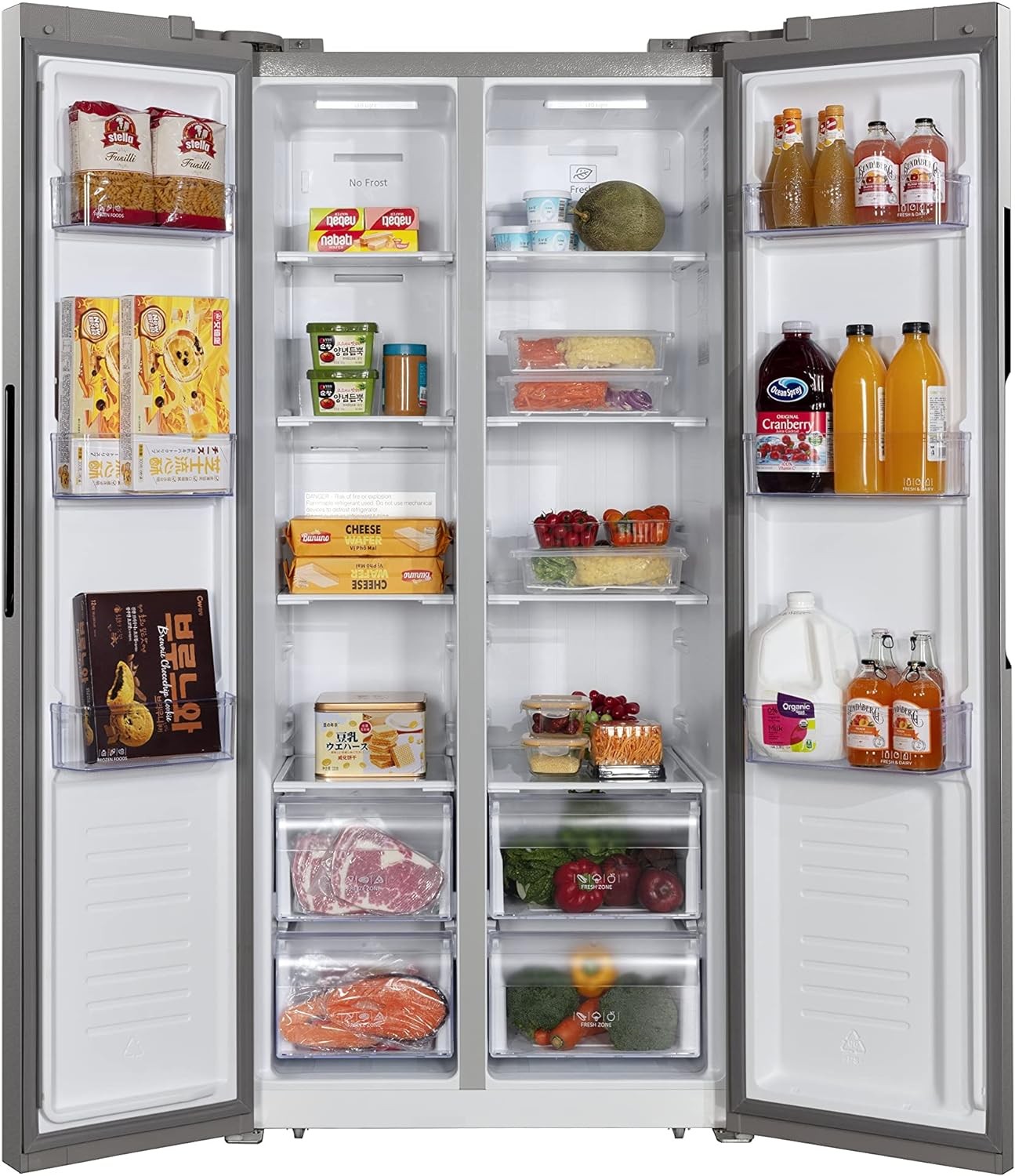 LARGE CAPACITY: Side by side doors 15.6 CuFt Capacity, perfect for all the family members OVERSIZE DOOR BINS: Our gallon-size bins are designed to store more, so you can fit a variety of beverages DIGITAL DISPLAY: Easily adjust your refrigerator and freezer settings from the digital display control panel conveniently mounted on the inside of the refrigerator door SIDE-BY-SIDE DOOR DESIGN: Allows you to organize and store your fresh and frozen foods to easily find what you need _Easily adjust the feet Height and remove or interchange your shelves for a personalized experience BUILT-IN LAMP: Find your food quicker with the interior light DELIVERY OPTIONS: Delivery & Haul-Away (in select locations) – Let us do the heavy lifting with options for room-of-choice delivery, item unboxing, item hook-up/installation and haul-away at checkout