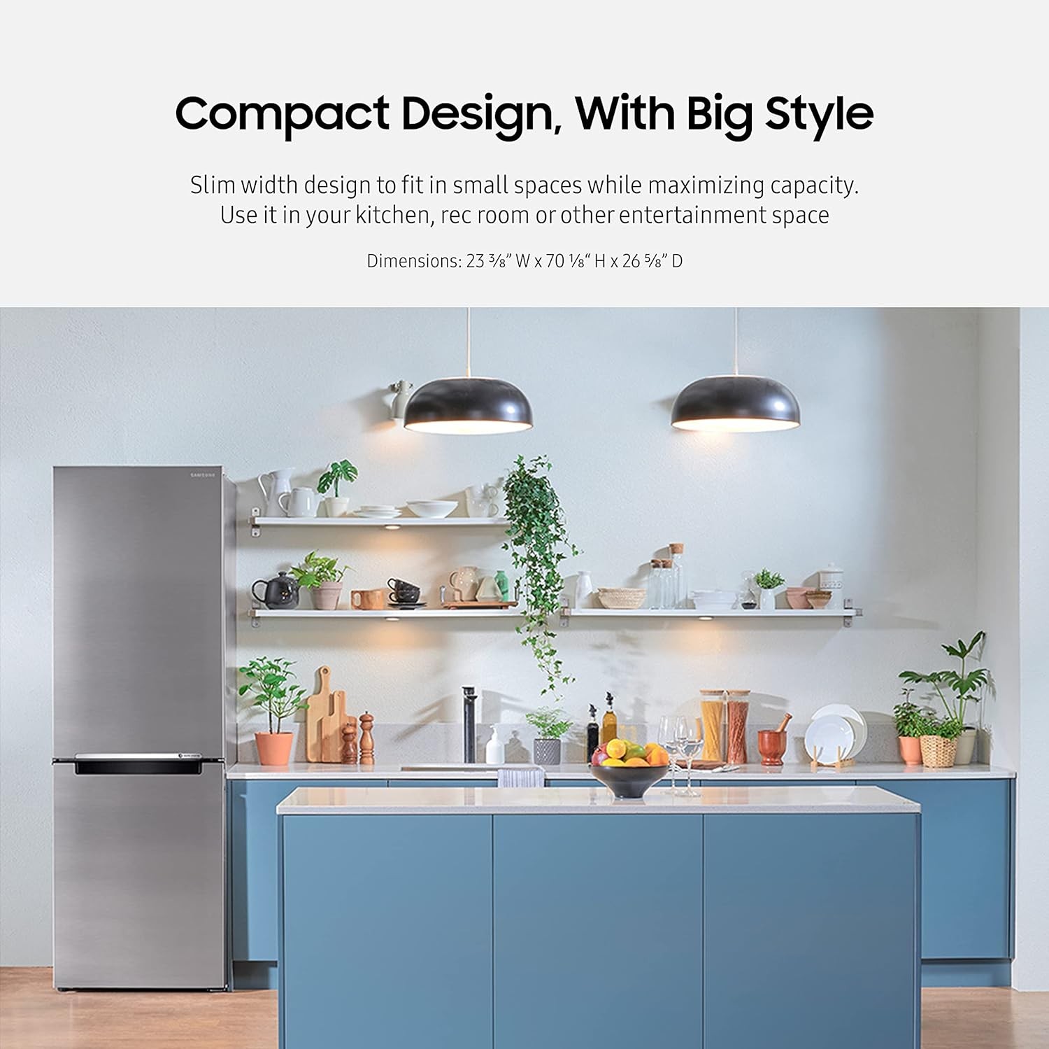 SAMSUNG 11.3 Cu Ft 24" Bottom Freezer Refrigerator, Slim Width for Small Spaces, Even Cooling, LED Lighting, Slide Shelf, RB10FSR4ESR/AA, Fingerprint Resistant Stainless Steel