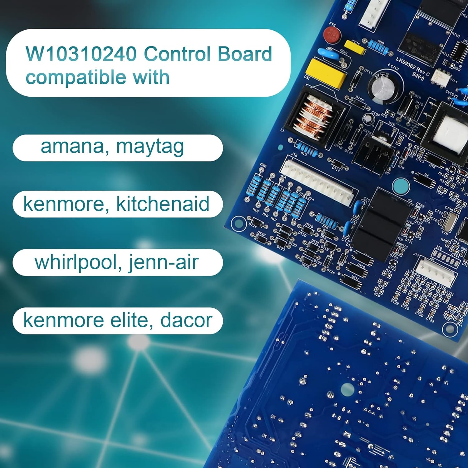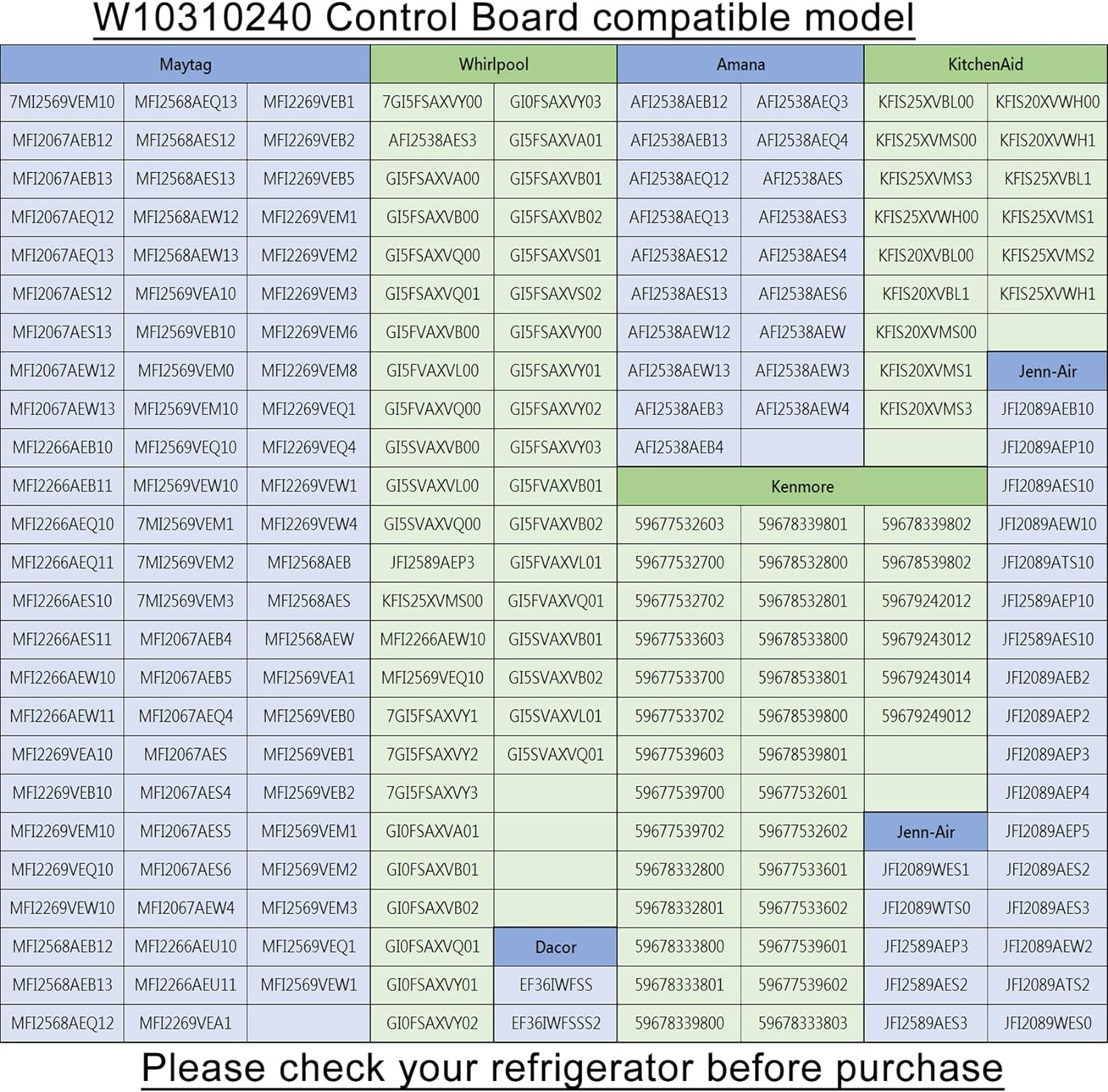 【Compatible brand】W10310240 control board compatible with amana, maytag, kenmore, kitchenaid, whirlpool, jenn-air, kenmore elite, dacor, Most of the adaptors will be shown in our details page and pictures. You can compare them with your refrigerator, or you can tell us your model. We will be happy to help you check and save your time and energy.