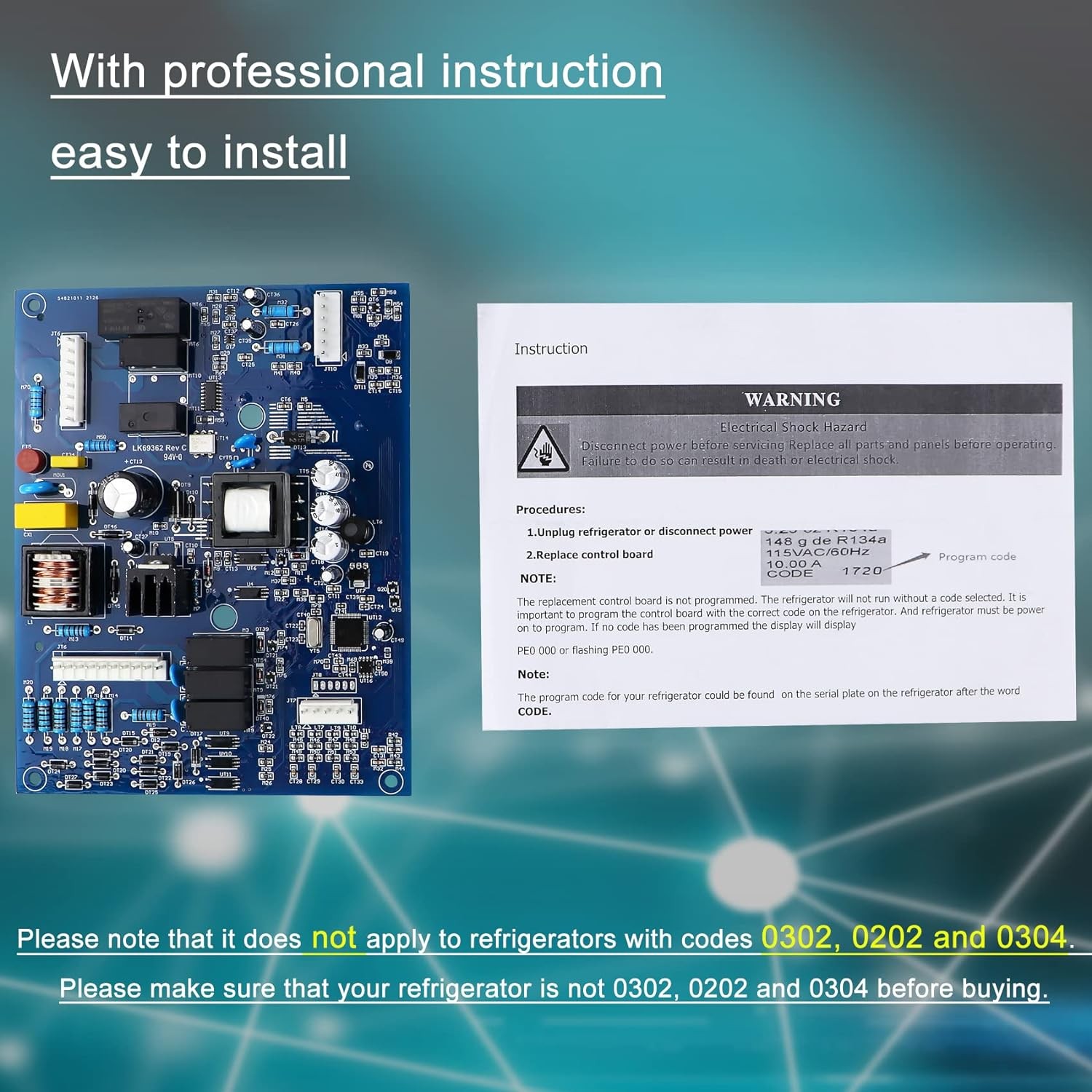 【Purchase instructions】W10310240 refrigerator electronic control board is used to manage cooling and defrosting time and other functions of the refrigerator. Please note that it does not apply to refrigerators with codes 0302, 0202 and 0304. Please make sure that your refrigerator is not 0302, 0202 and 0304 before buying.