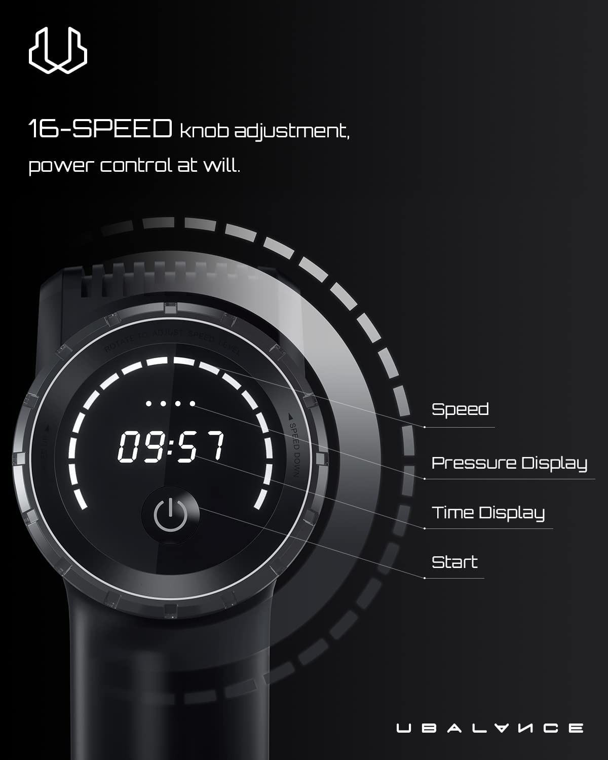 ?Muscle massage gun:16-grade rotary knob for speed regulation and 55-models high-torque brushless motor, can achieve the desired effect of muscle massage in a precise and convenient manner. The massage gun with the magnitude force up to 55 pounds can promote greater circulation and tension release.