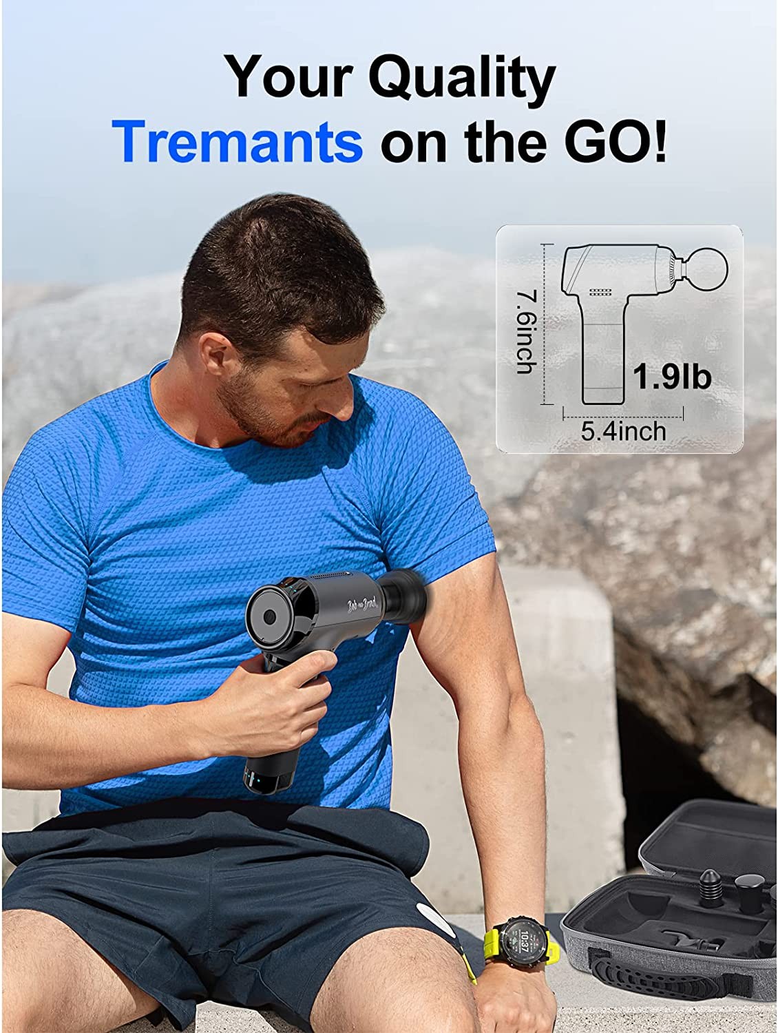 QUIET and PORTABLE MASSAGE GUN - Our handheld massage gun provides you with a quiet massage as its working noise is only 45dB. It’s easy to hold with its ergonomic silicone handle design. Its compact size and case make it easy to carry around and use at work, the gym, and any other places you go.