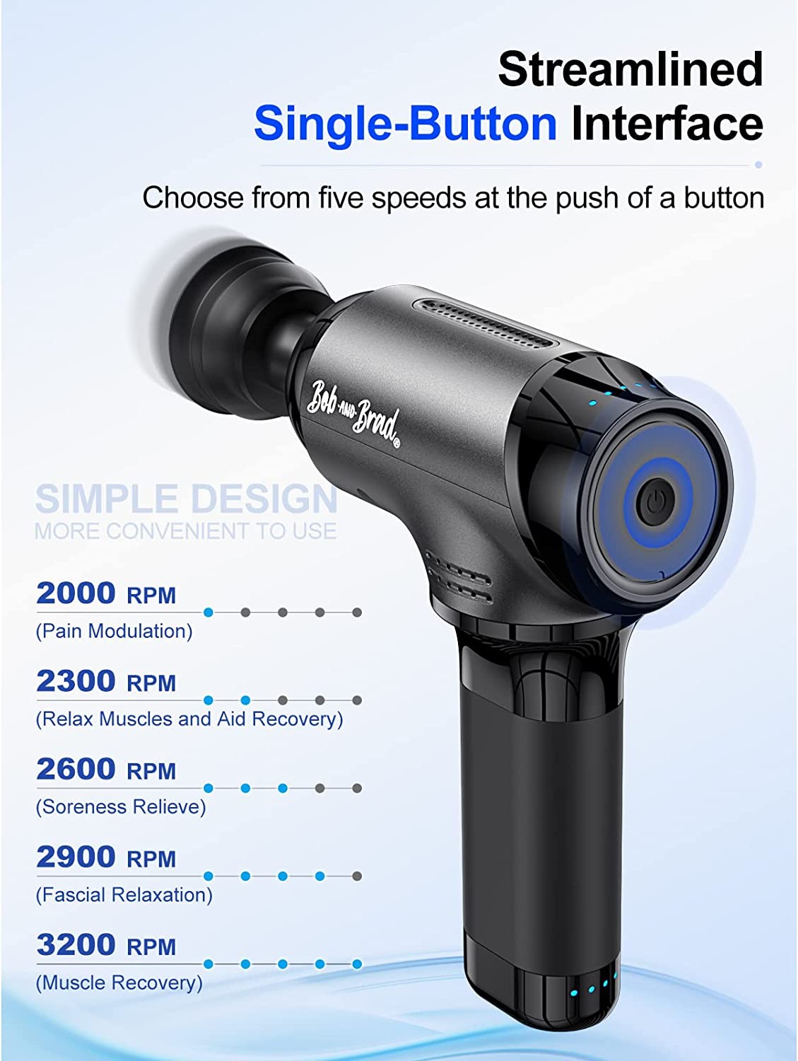 DEEP MUSCLE RELAXATION - The Bob and Brad deep percussion massage gun is powered by a 25W high-torque brushless motor that runs up to 3200 RPM. It reaches and massages deeper in the muscle tissue with its 10mm amplitude, providing you a powerful experience. The massage gun is easy to use and relieves muscle fatigue and pain, boosts blood circulation, and helps with recovery after intense workouts. Ideal for athletes, people who exercise, or people with injuries.
