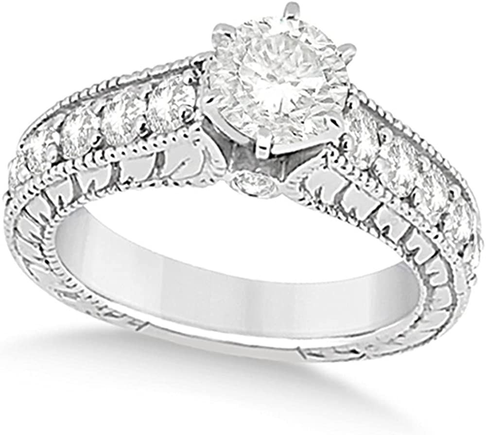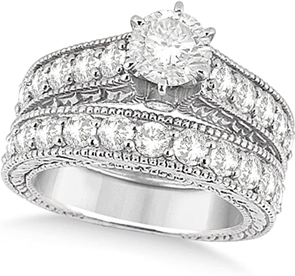 Women's Antique Diamond Wedding and Engagement Ring Set Platinum (3.15ct)