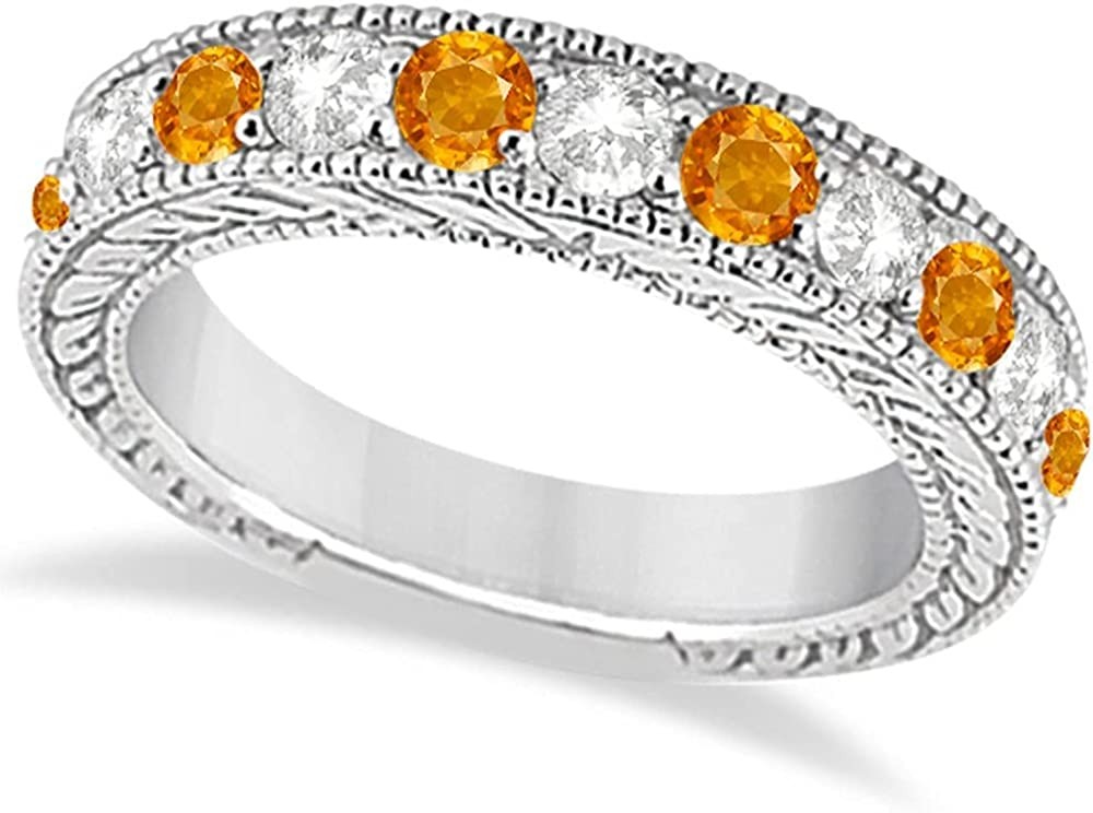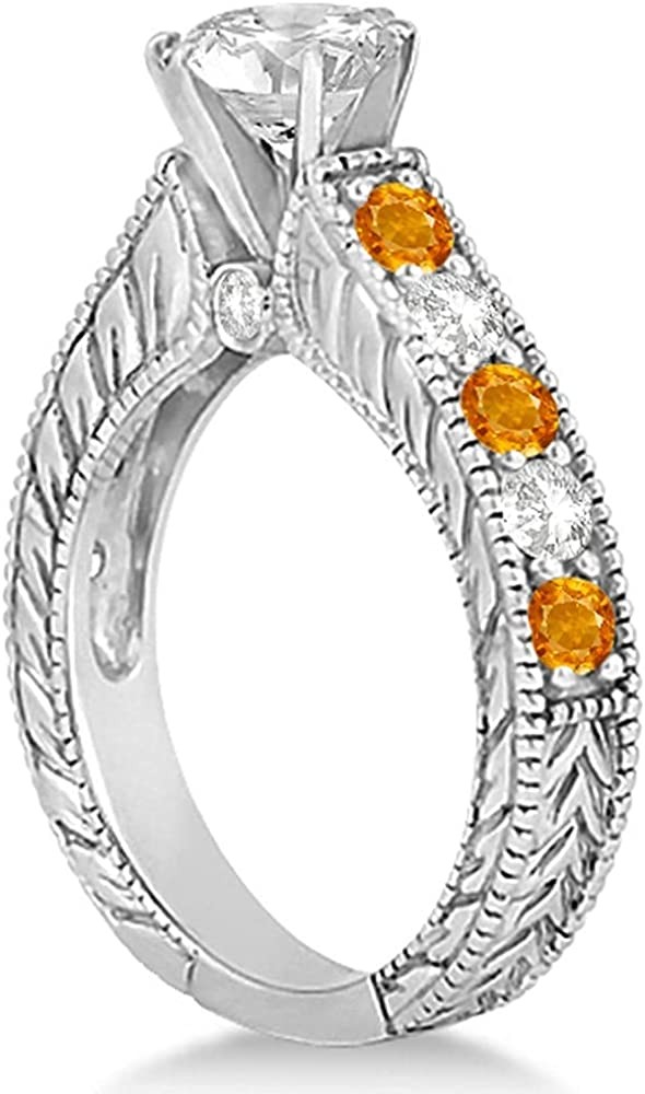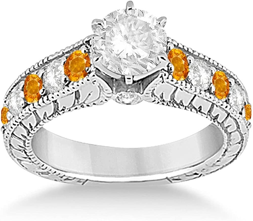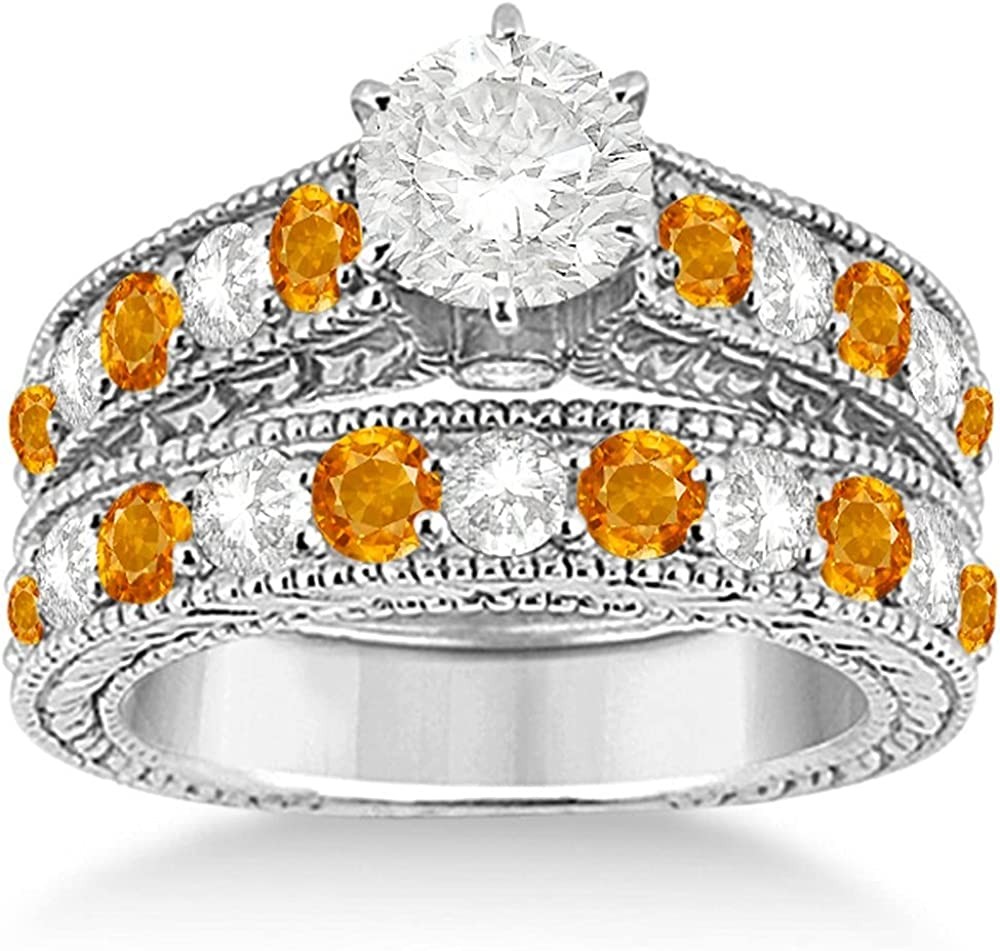 Antique Diamond and Citrine Bridal Gemstone Wedding Ring Set Hypoallergenic Palladium (3.12ct)