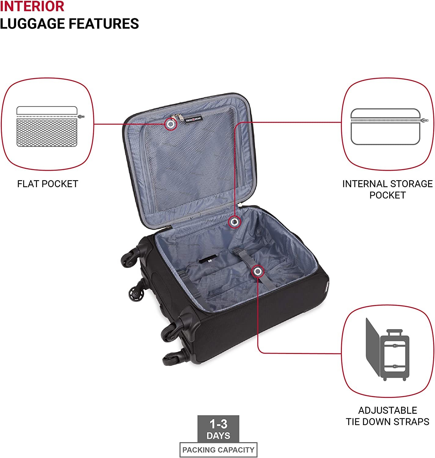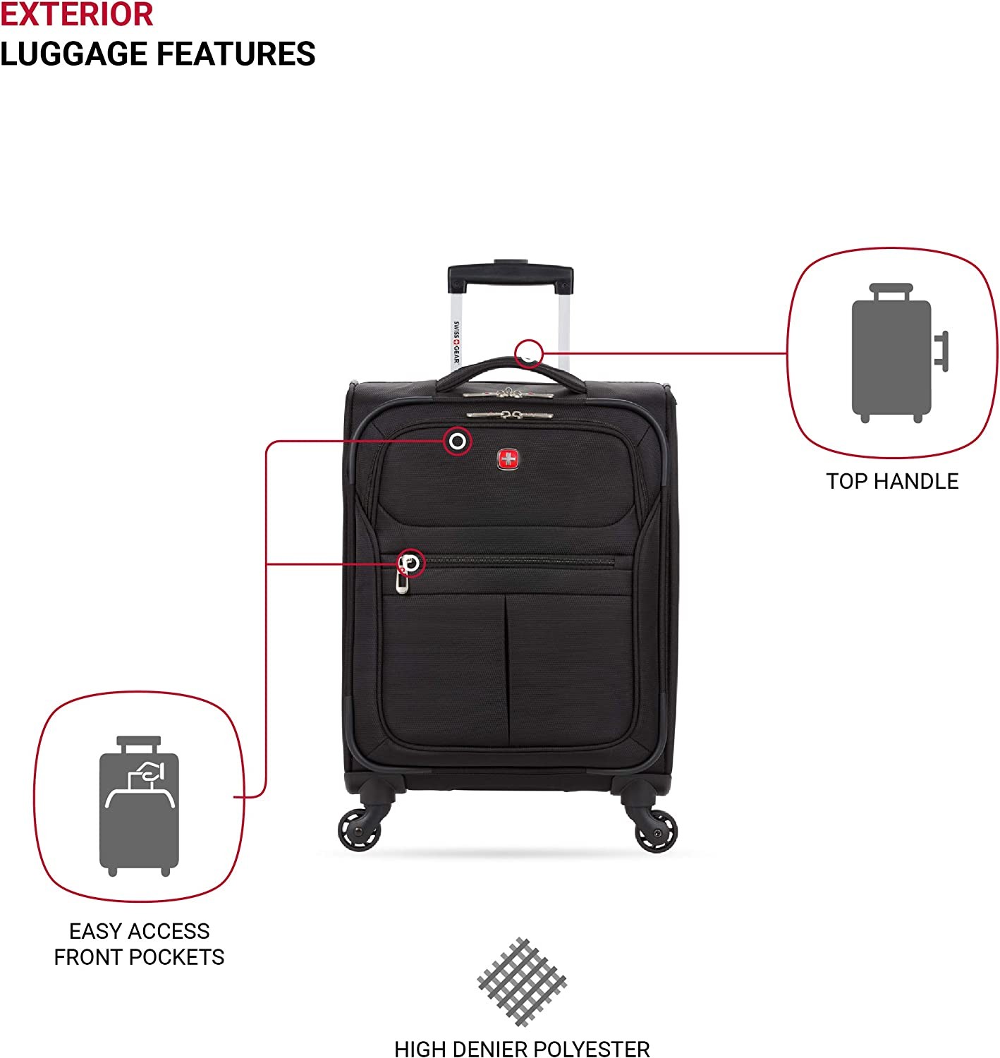 360-degree spinner maneuverablity: propped on 4 wheels and a locking retractable handle, take advantage of its easy pushing and pulling maneuverability to seamlessly get through a crowded airport or down narrow airplane isles. FULL FEATURED INTERIOR: Equipped with a fully lined interior, maximize packing efficiency with multiple interior packing pockets, and adjustable tie down straps to help keep clothing in place while on the move. MULTIPLE FRONT PANEL POCKETS: Exterior front panel features two front zip compartments to organize travel essentials required while traveling as well as last-minute add-in items. LIGHTWEIGHT LIFT HANDLE: Comfortable lightweight top lift handle for easy lifting and maneuvering without the bulk. DIMENSIONS: Packing Dimensions: 16” x 13.5” x 7.5”; Product Dimensions (includes wheels and handles): 21.5” x 15” x 9”; weight: 5.7 lbs