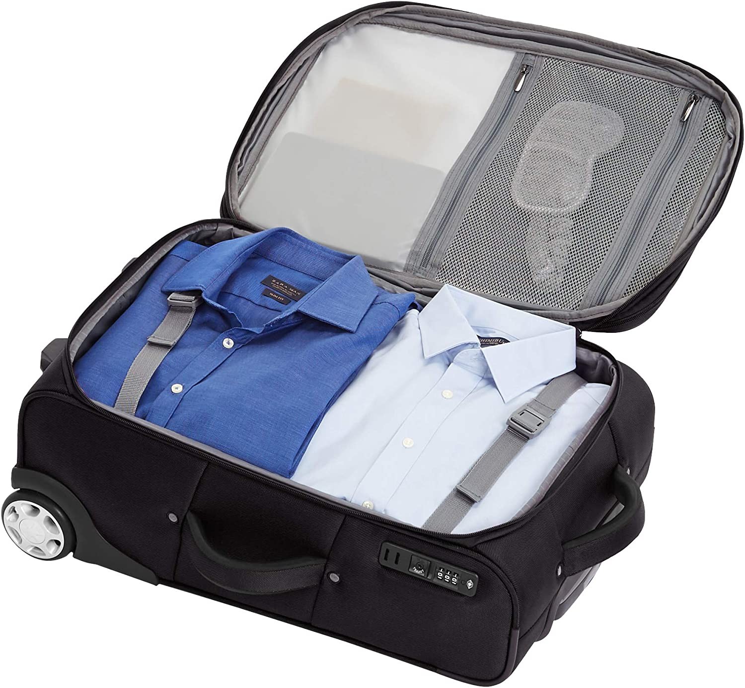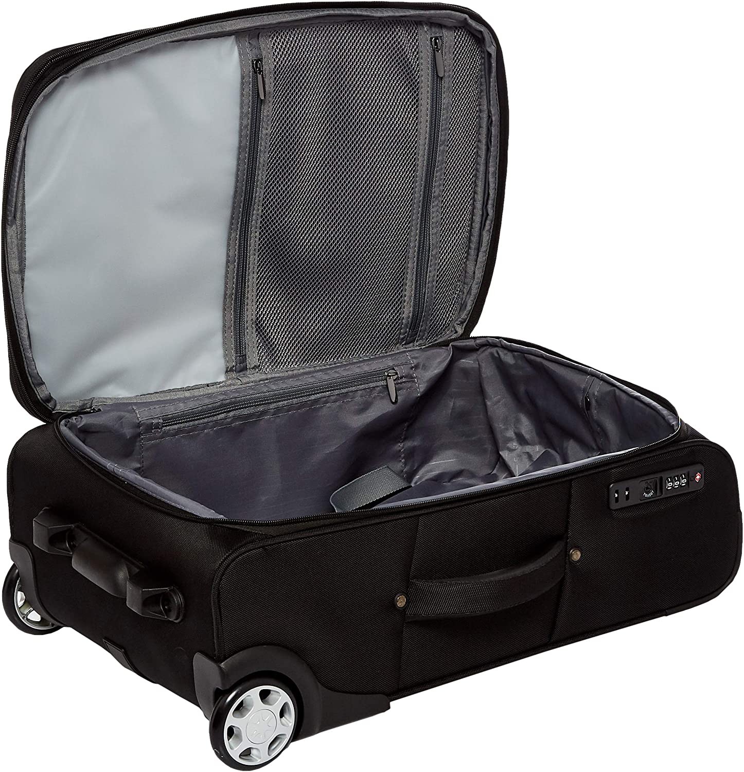 Outer dimensions (including wheels): 16.7 x 9.8 x 24 Inches; Interior dimensions: 13.7 x 8.4 x 20.6 Inches Interior capacity: 40 Liters Weight: 6.61 lbs. 24-inch premium softside suitcase for savvy travelers 2 inline wheels and sturdy telescoping handle ensure comfortable rolling Strategically placed support stabilizers help prevent tipping Protective reinforcements include crash-guard wheel housings, skid guard, and molded corner guards Built-in TSA lock offers an added level of security; sleek Black color