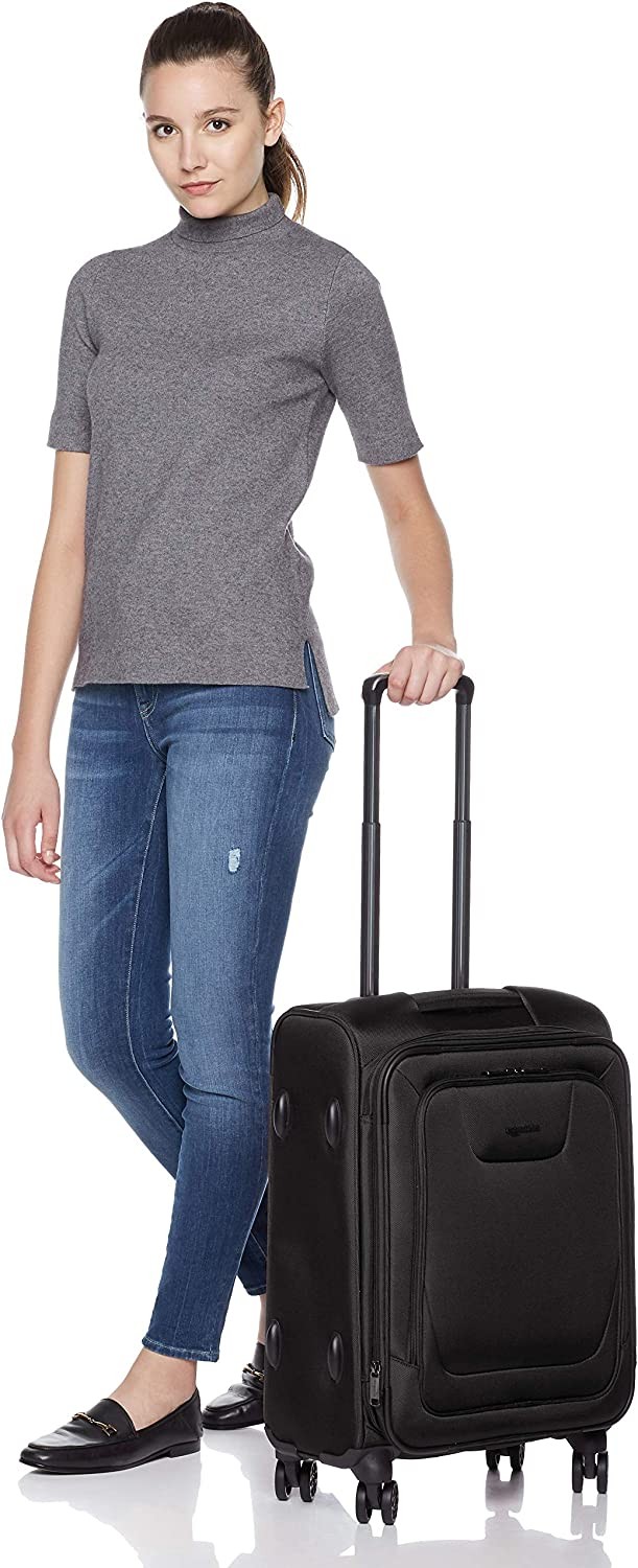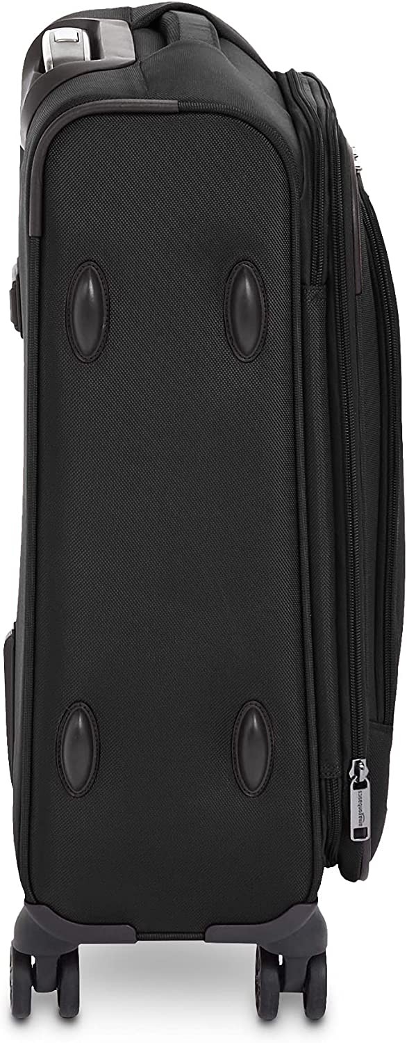 Premium 23-inch carry-on softside spinner for savvy travelers; built-in TSA lock provides an added level of security 4 double-wheeled spinners and sturdy telescoping handle ensure comfortable rolling and easy maneuverability Strategically placed support stabilizers help prevent the suitcase from tipping over Protective design features include crash-guard wheel housings, a skid guard, and molded corner guards Outer dimensions (including wheels): 15.7 x 9 x 23.2 Inches; Interior dimensions: 14.5 x 7.8 x 19.2 Inches Interior capacity: 36 Liters Weight: 7.19 lbs.