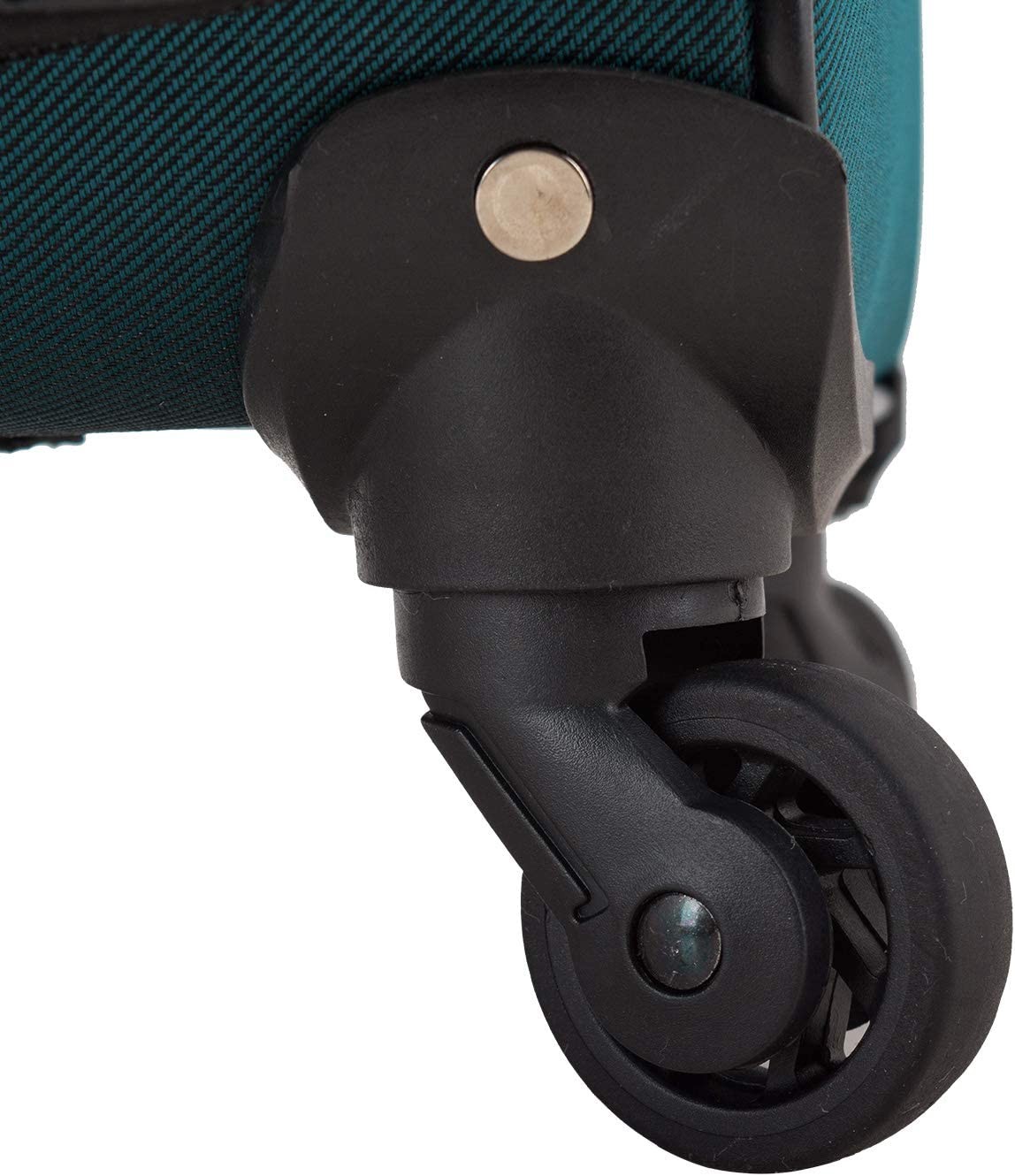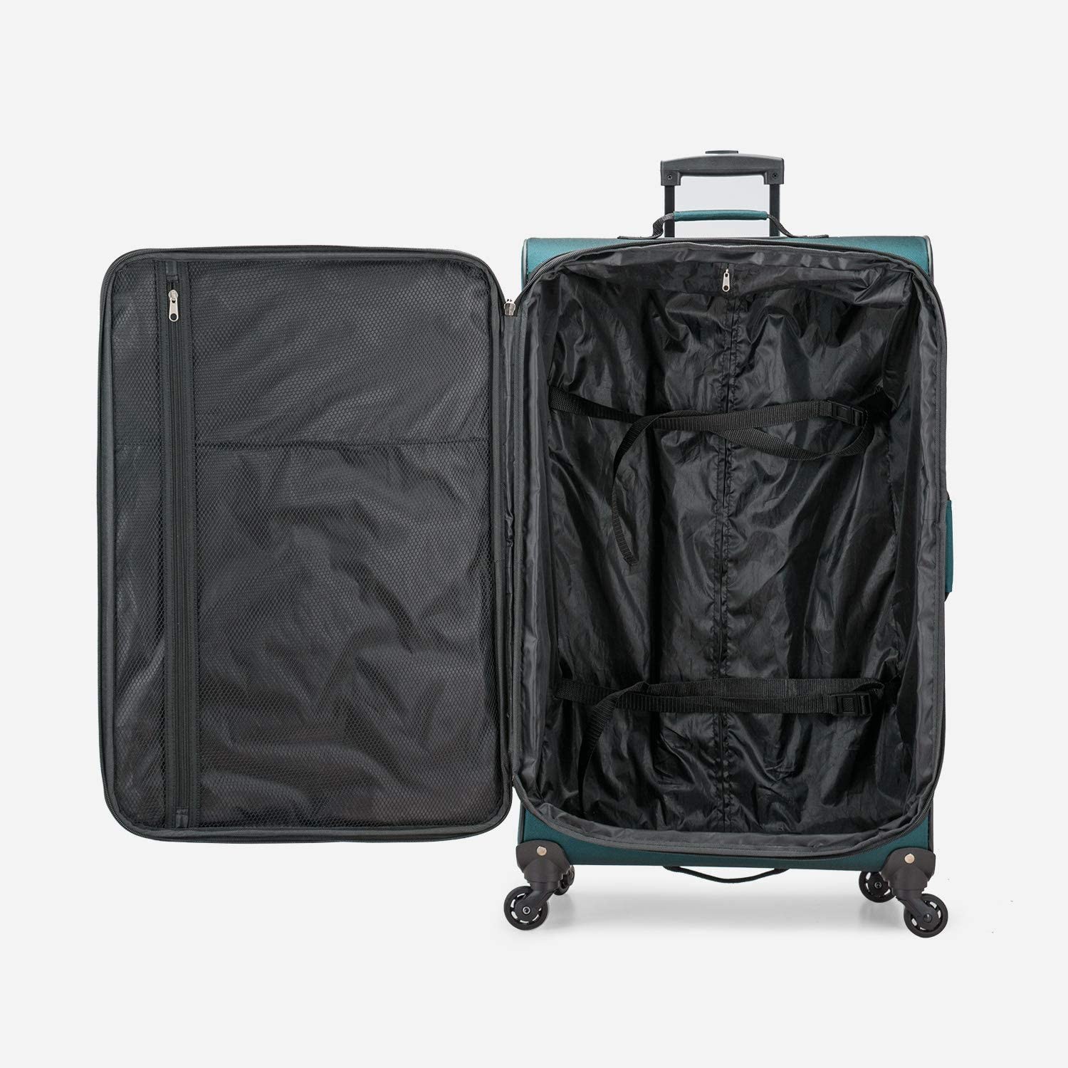 Made from durable twill polyester fabric. The exterior boasts two large exterior pockets for last minute items. The large interior zippered mesh pocket for easy organization. A push-button multi-stage handle adjusts to different heights. Top, bottom and side carrying handles for easy handling. Features four 360-degree spinner wheels for easy mobility. All pieces roll upright so there is no weight on your arm. Includes a 2-inch expansion gusset for extra packing space. Includes a full interior lining with compression straps to keep items in place. 31” Spinner’s Exterior & Interior Dimensions: 31”H x 18”W x 11”D + 2” Exp. (8. 57 lbs. ) & 28”H x 18”W x 11”D + 2” Exp.