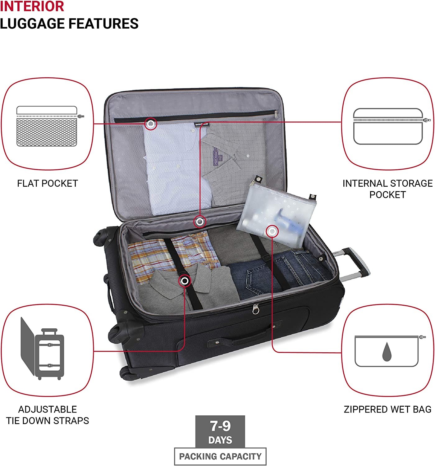 SwissGear Sion Softside Expandable Luggage, Black, Checked-Large 29-Inch