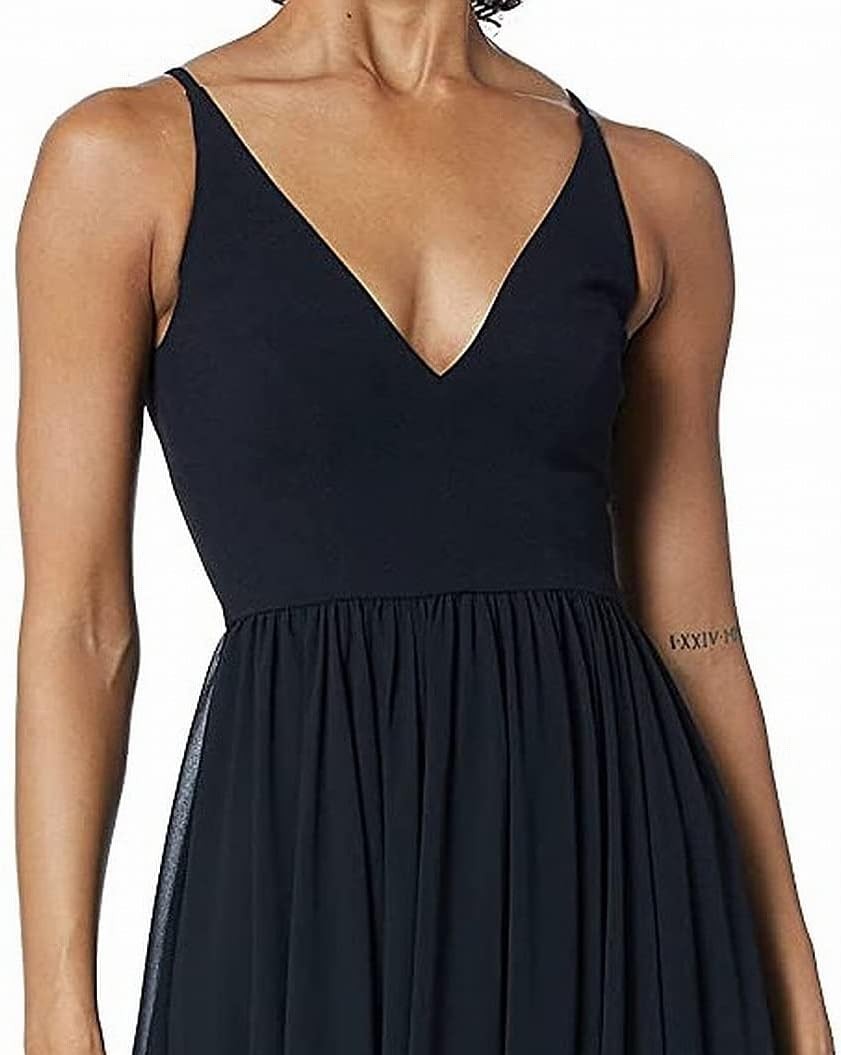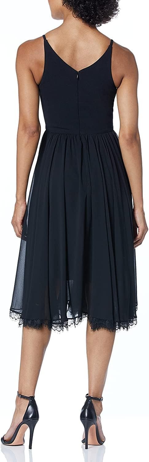 Dress the Population Women's Alicia Plunging Mix Media Sleeveless Fit and Flare Midi Dress