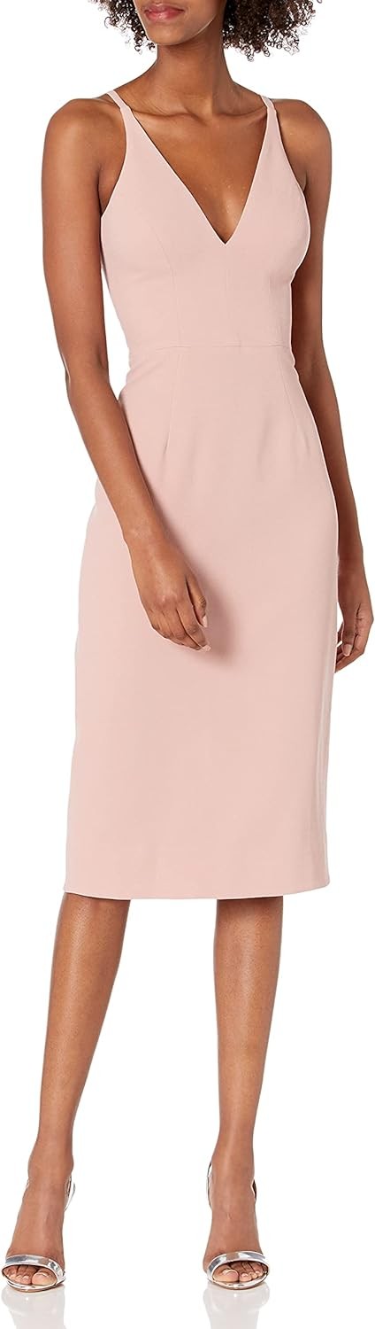 Dress the Population Women's Lyla Solid Sleeveless Fitted Midi Sheath Dress