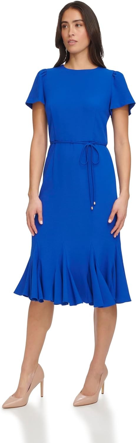Tommy Hilfiger Women's Stretch Fabric Trumpet Skirt Self-tie Belt Dress