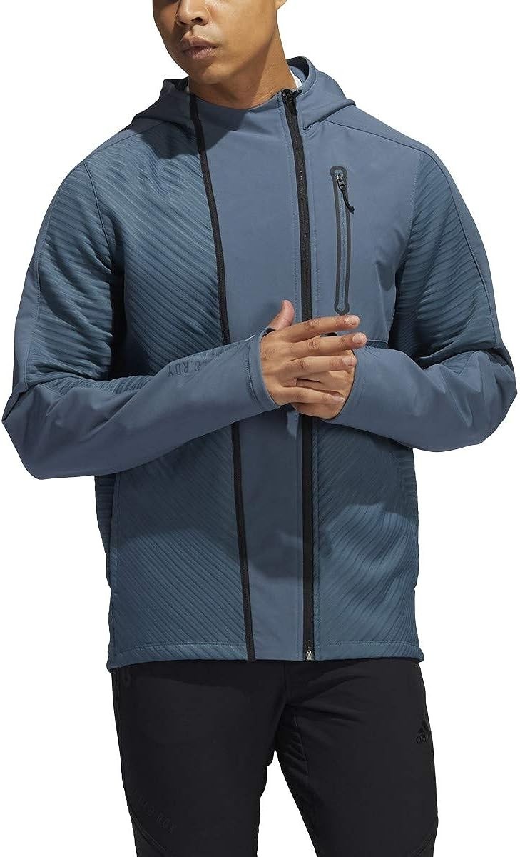The morning air can often be the best air for running. This men's adidas training jacket has a full zip and a hood to keep you covered if it gets too cold. It's insulated and manages moisture, meaning mile after mile you're warm and dry.