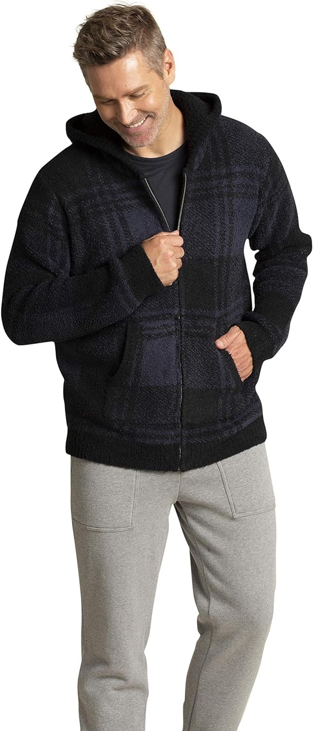 Looking for a special gift that stands out from all the mainstream gift items? You’ve come to the right place. Our Barefoot Dreams’ CozyChic Men's Plaid Zip Up Hoodie is sure to be the new favorite clothing item for whomever receives it. Delight any sweater lover with this high-fashion, hoodie! We just know it’s going to be an essential layering piece in every man’s closet. Its convenient zip-up front design will allow you greater functionality and style than with many other knit hoodies on the market. These jackets are lightweight enough to layer with other clothing while still being warm and thick enough to keep you comfortable in the crisp fall and winter air. The zippered front of this hoodie allows you to proudly display your outfit. Match this hoodie with any colored clothing item you want to wear with it. Whether you are aiming for dressy or casual, this fashionable knitted accessory allows you to dress for a hunting trip or even a night on the town. Made of 100% polyester microfiber. Complete your wardrobe with this CozyChic Men's Plaid Zip Up Hoodie from Barefoot Dreams today and enjoy knowing that you’re staying on top of the latest high-end fashion trends. We also sell cardigans, loungewear, and other fun outerwear items to make your wardrobe as classy as ever. At Barefoot Dreams, we think you deserve to be totally comfortable. That’s why we specialize in men and women’s relax wear. We strive to provide comfortable, soft, snuggle-worthy apparel. When you buy our men’s zip-up hoodies, you’ll never want to take them off! They’re that comfy!