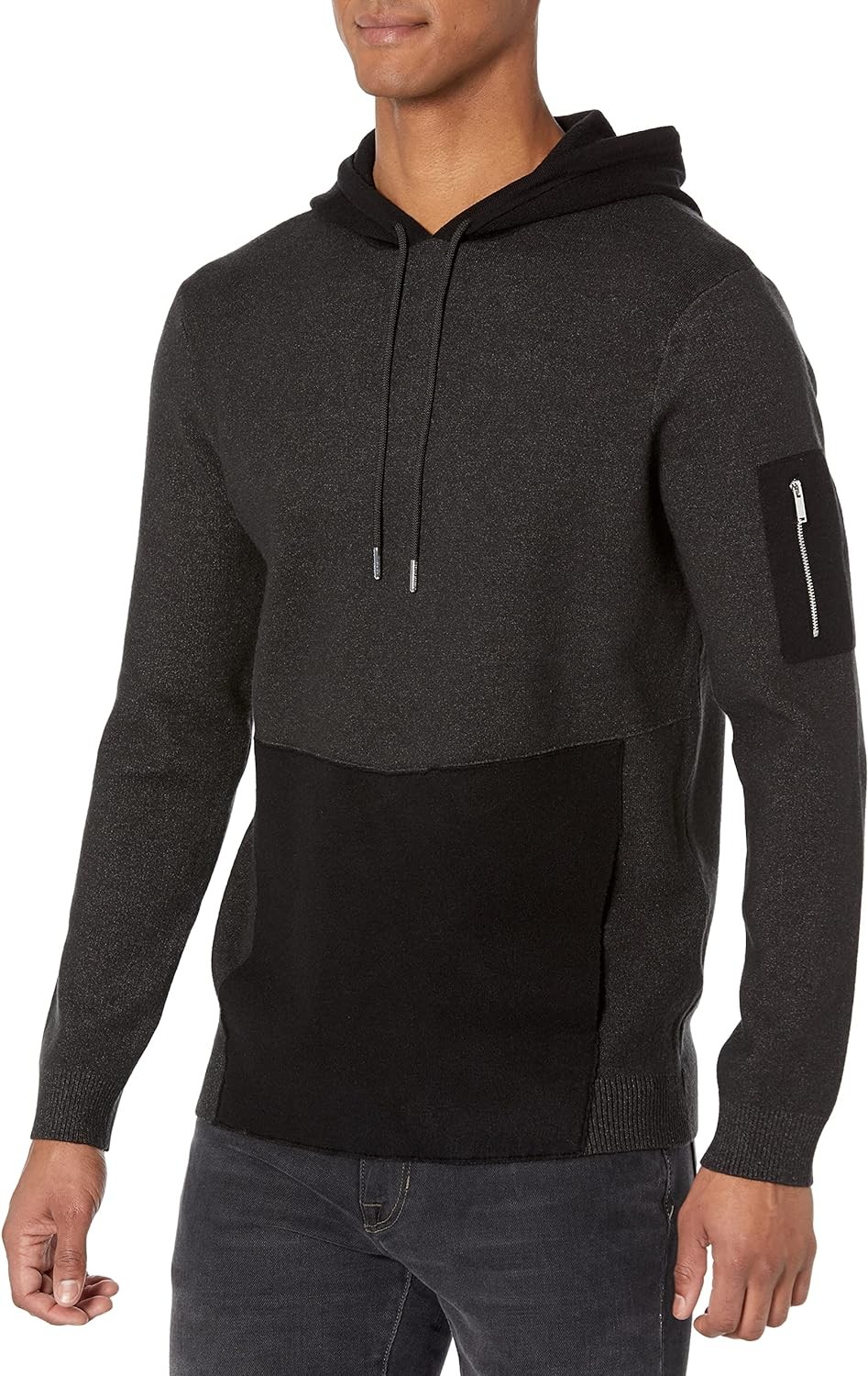 This Karl Lagerfeld Paris mens Sportswear Sweater Hoodie is a soft color block casual with zip pocket on sleeve long sleeve