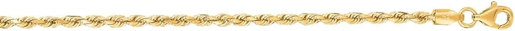 14k Yellow Gold 2.5mm Shiny Solid Sparkle-Cut Rope Chain With Lobster Clasp Necklace - in 14k Yellow Gold - Length Options: 16 18 20 22 24 30