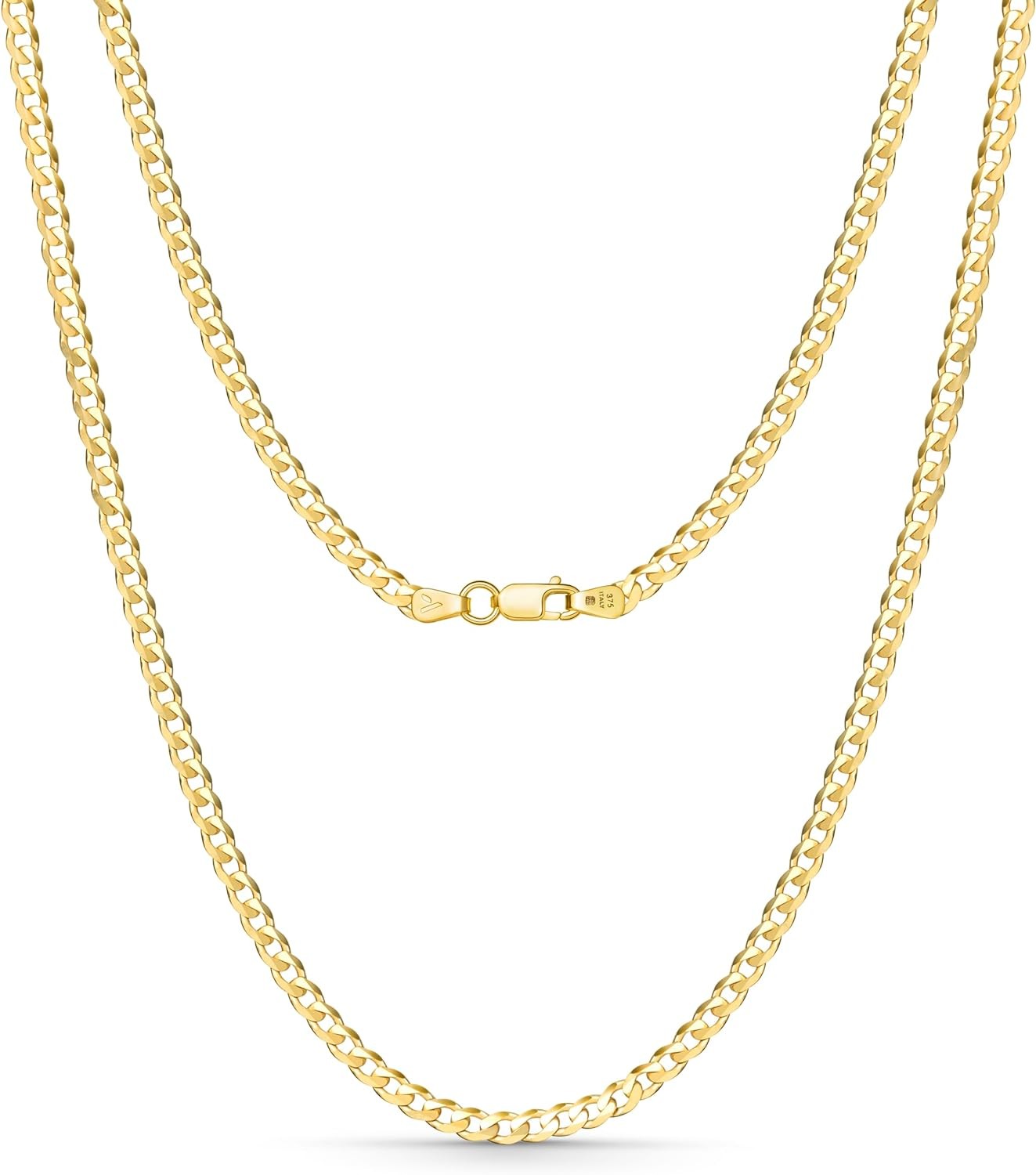 Made of solid 9-carat gold, our diamond-cut curb chain necklace exudes confidence and strength. It's warm, yellow finish creates a captivating shine, catching the light from every angle and enhancing your natural radiance. Each link is precisely crafted to seamlessly interlock. allowing you to enjoy this timeless piece of gold curb chain for women for years to come.