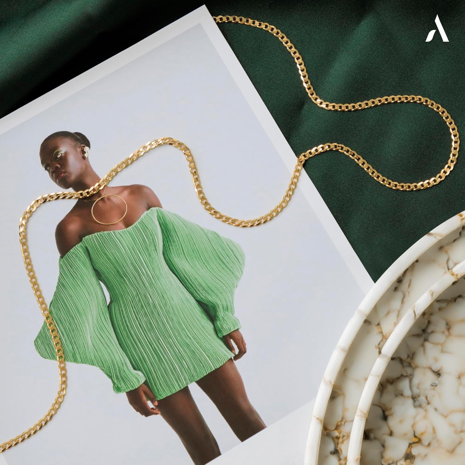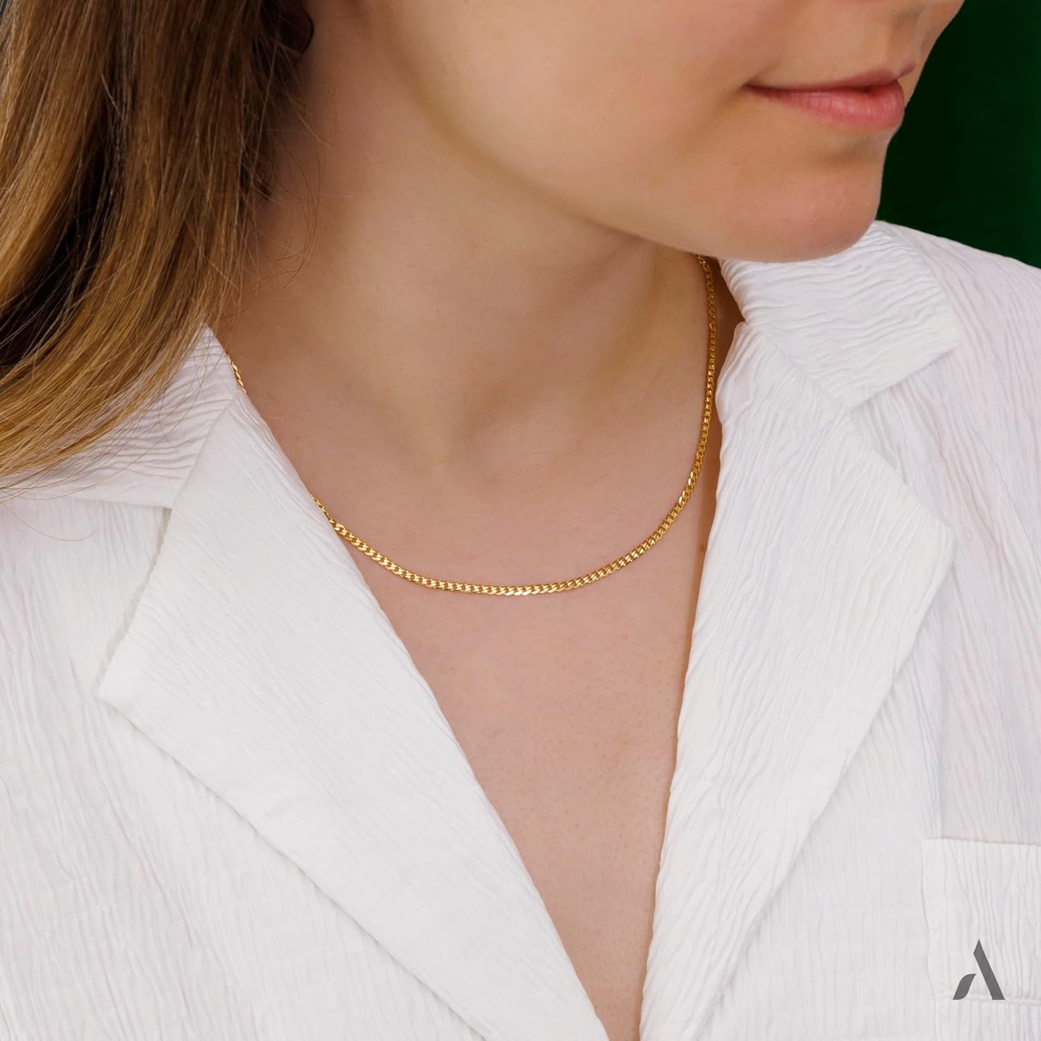 Elevate your jewelry collection with our gold necklace. A bold, striking gold curb chain that drapes elegantly around your neck.
