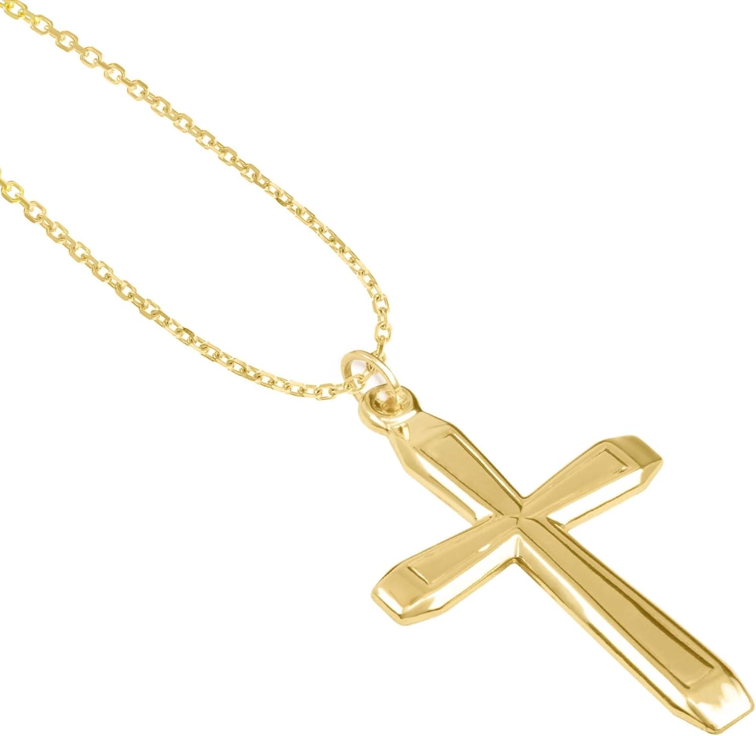 Engraved Swirls Cross, Slanted Edge Cross and Yellow and White Gold Crucifix Varieties are Also Available