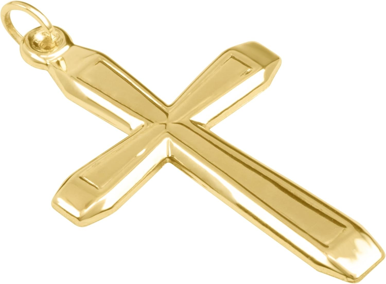 14K Yellow Gold Slanted Edge Cross Pendant / Charm, 57MM