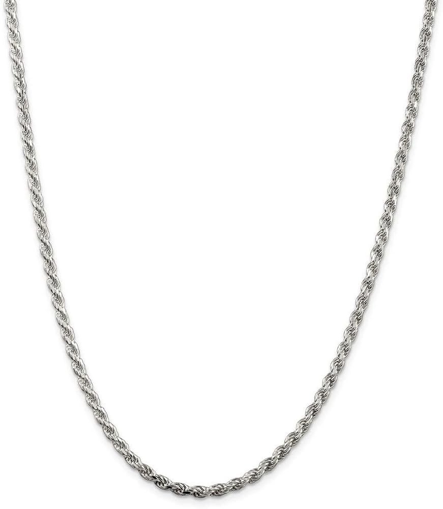 925 Sterling Silver Rhodium Plated Sparkle Cut Rope Chain Necklace Jewelry Gifts for Women in Silver Choice of Lengths 16 18 20 24 22 26 28 30 and Variety of mm Options