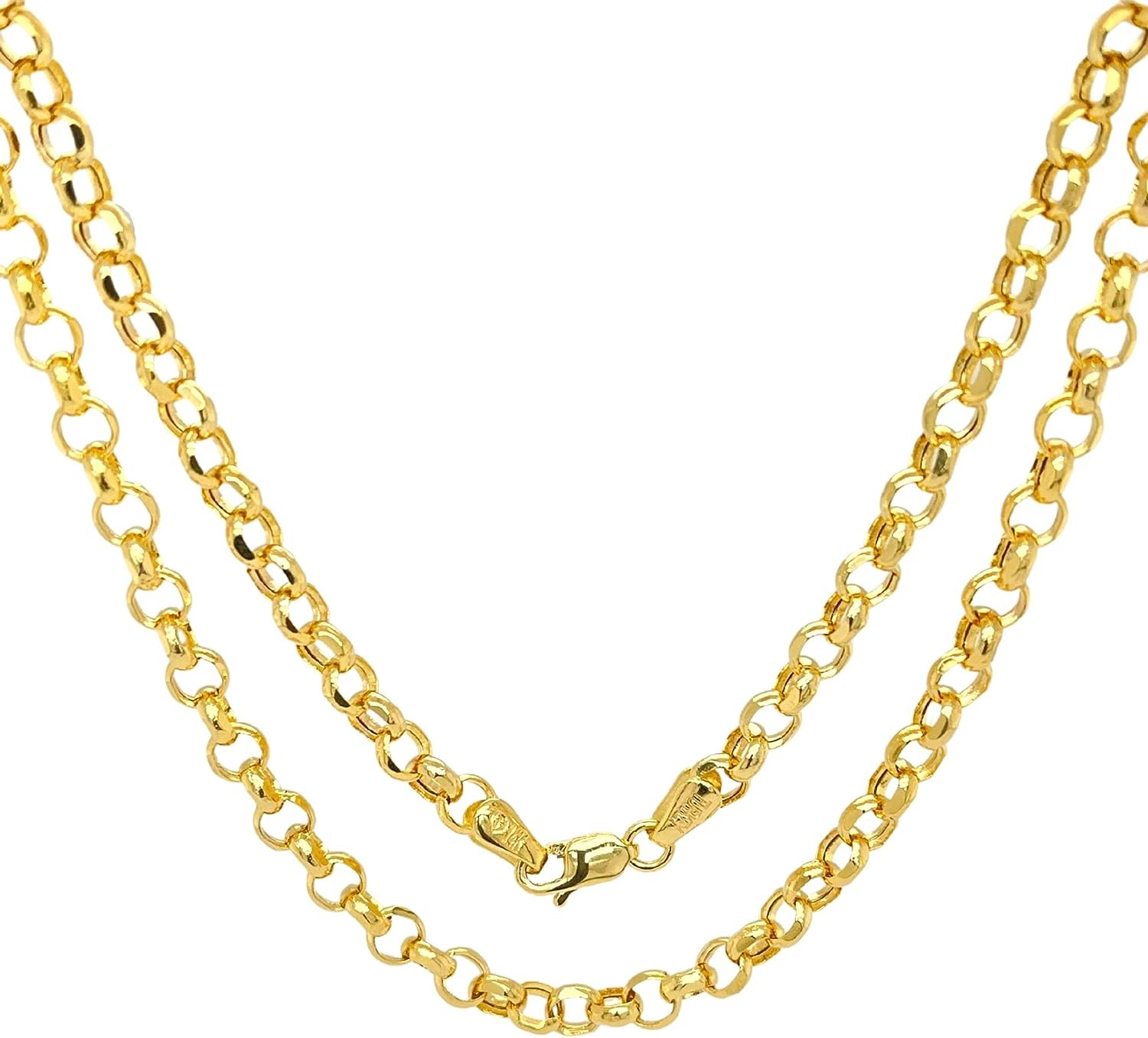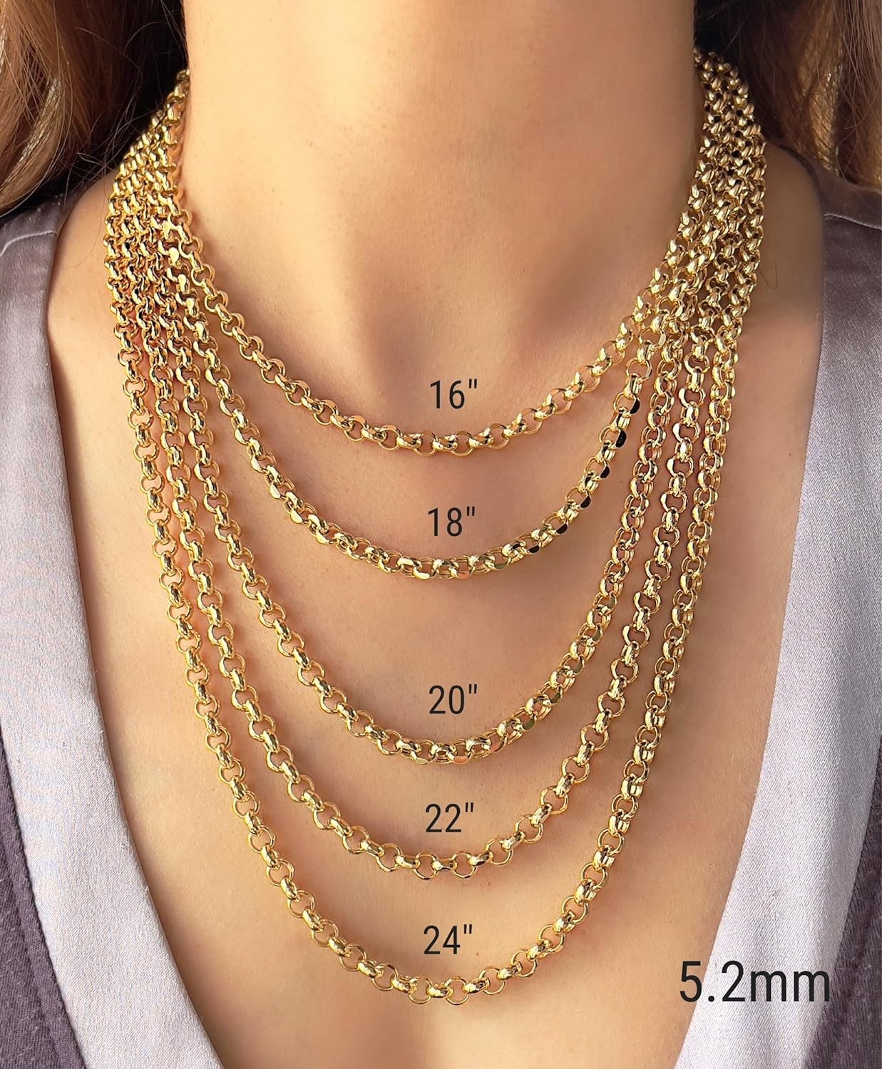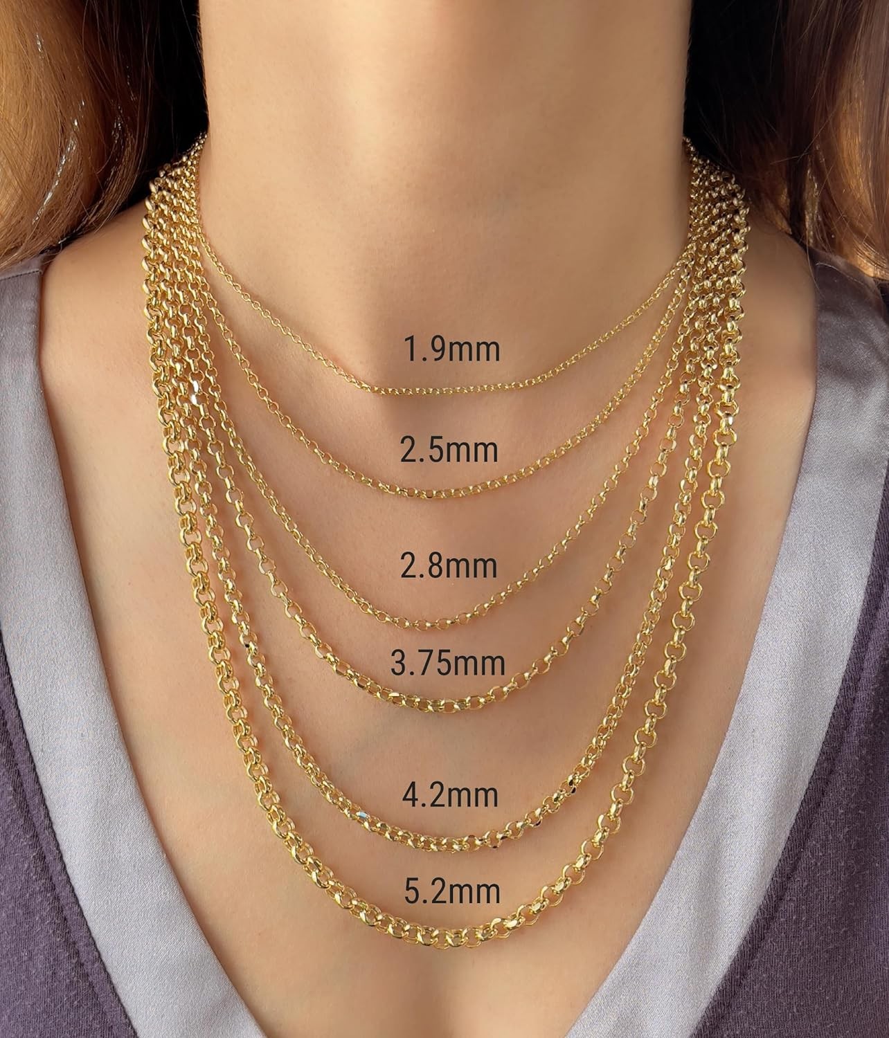 JEWELHEART 14K Real Gold Rolo Chain 1.9mm 2.5mm 2.8mm 3.75mm 4.2mm 5.2mm Diamond Cut Trendy Round Link Chain Pendant Necklace For Women Girls 16" 18" 20" 22" 24"