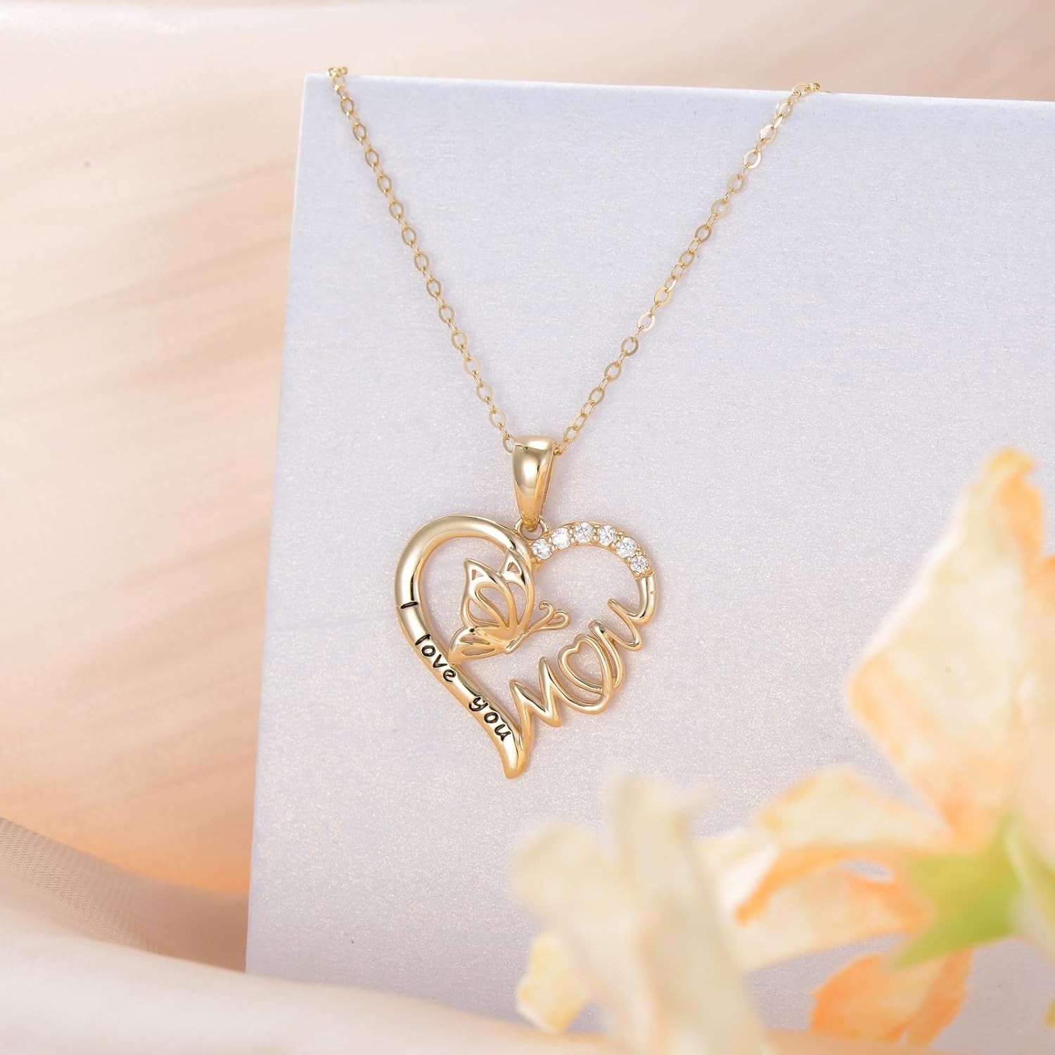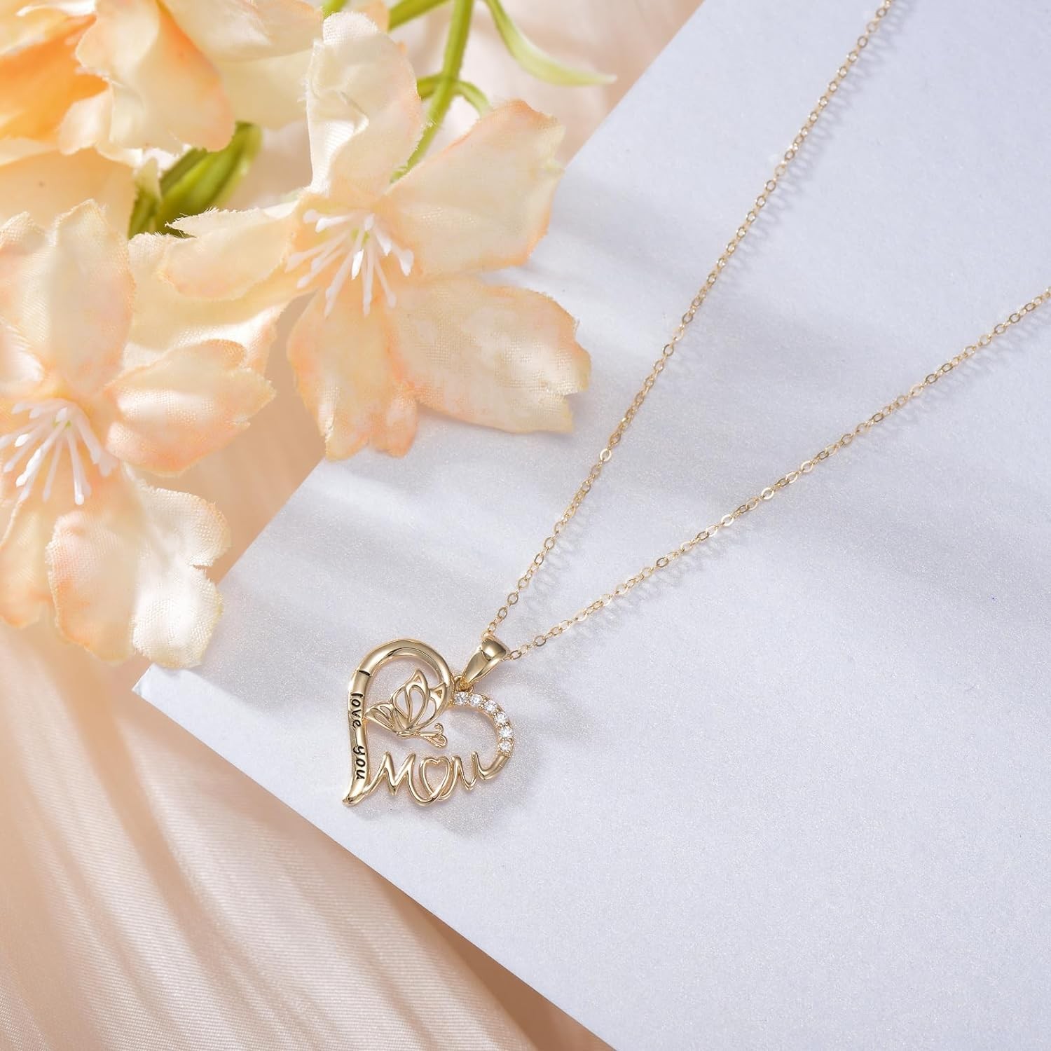 KECHO 14k Solid Gold Mother Daughter Necklace for Women, Mother and Child Jewelry Mothers Day or Birthday Gifts from Daughter Son