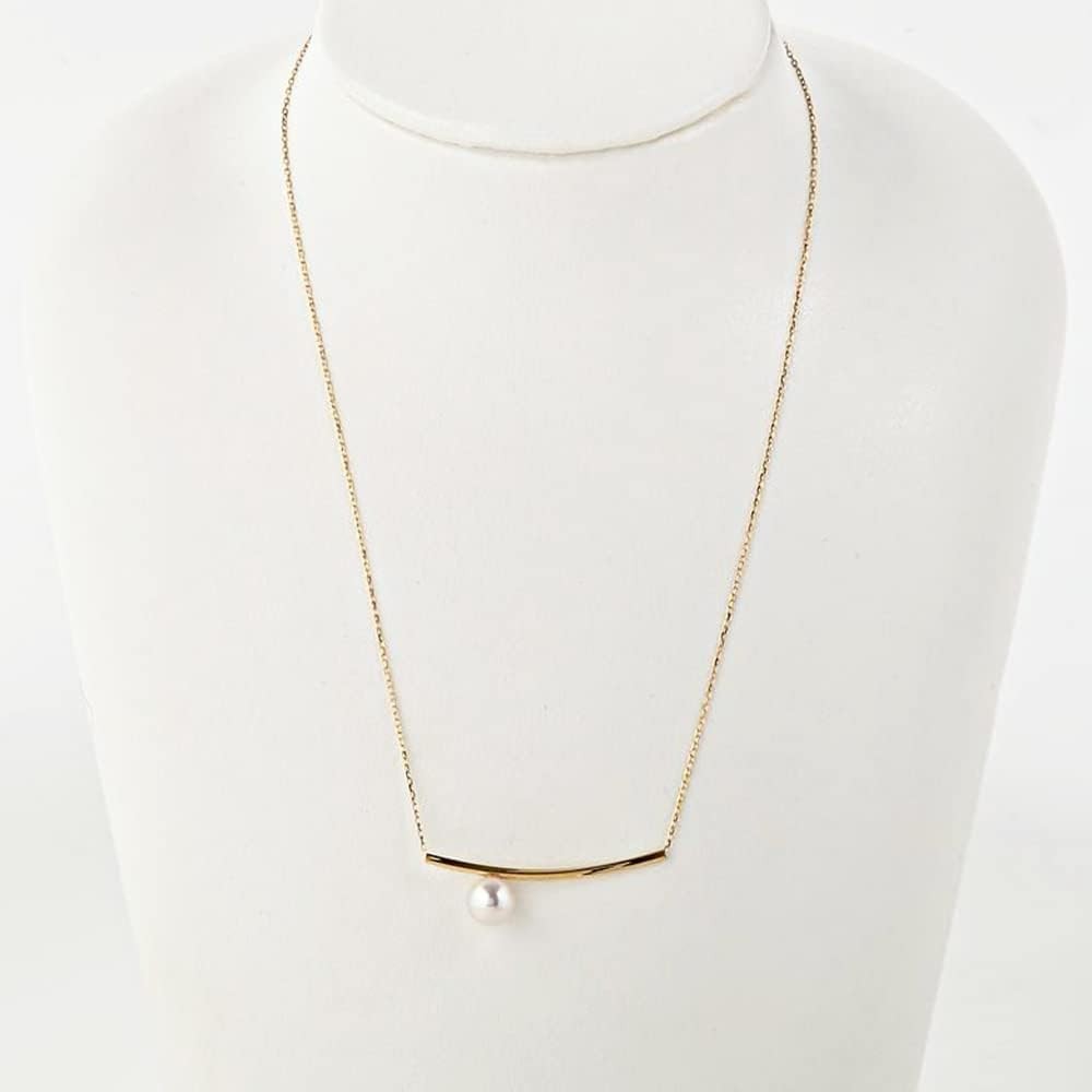 The "Svelte Line" pendant has a smooth gold line and pearls that add a presence to your chest.