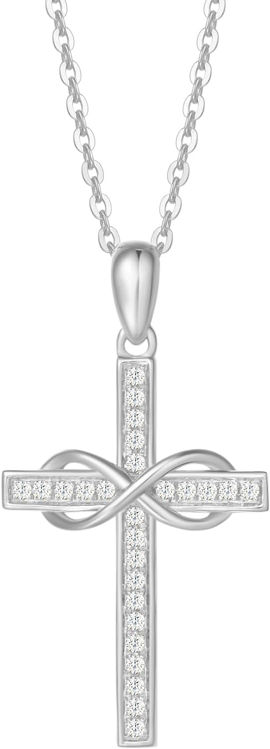 FANCIME 14k Solid Gold 0.13cttw Genuine Diamond Crucifix Cross Infinity Forever Love Pendant Necklace Fine Jewelry Birthday Mother's Day Gifts for Women Girls, 16"+2" Extender