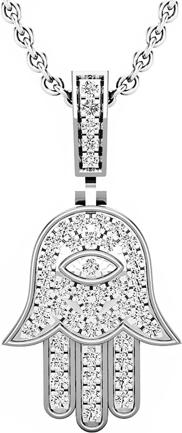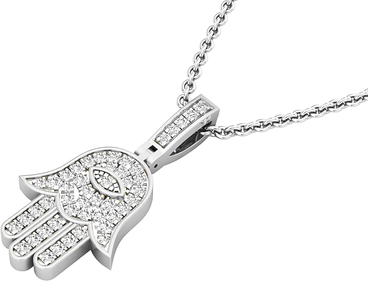 Dazzlingrock Collection 0.25 Carat (ctw) Round White Diamond Ladies Small Hamsa Hand of Fatima Charm Pendant 1/4 CT