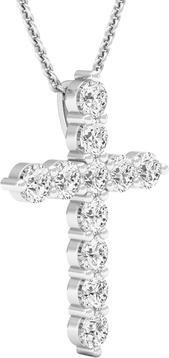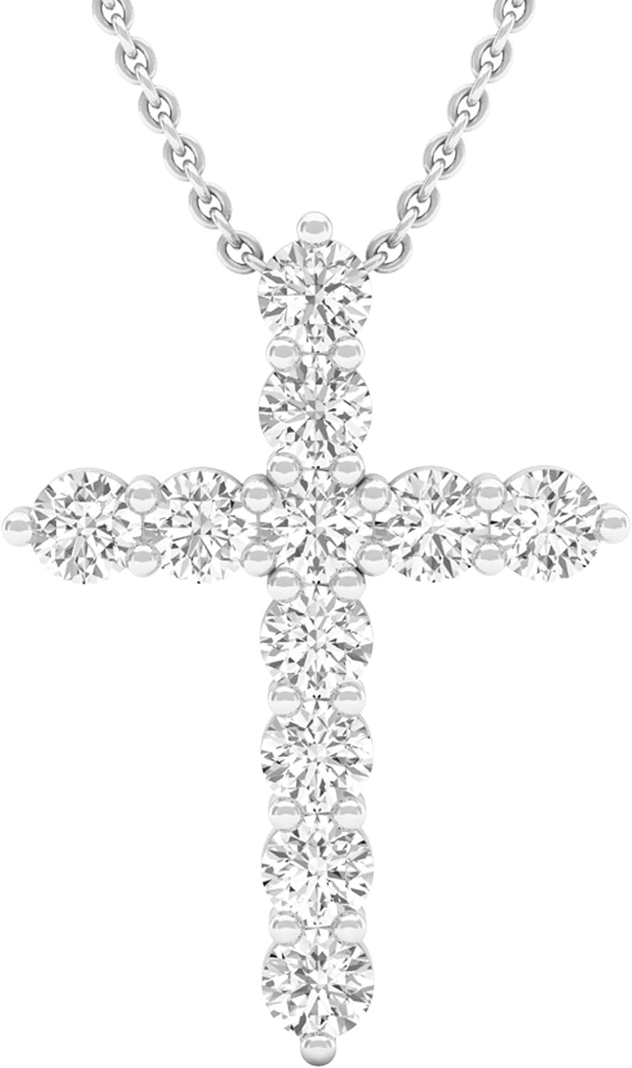 Dazzlingrock Collection Round Gemstone Ladies Cross Pendant (Silver Chain Included), 14K Gold