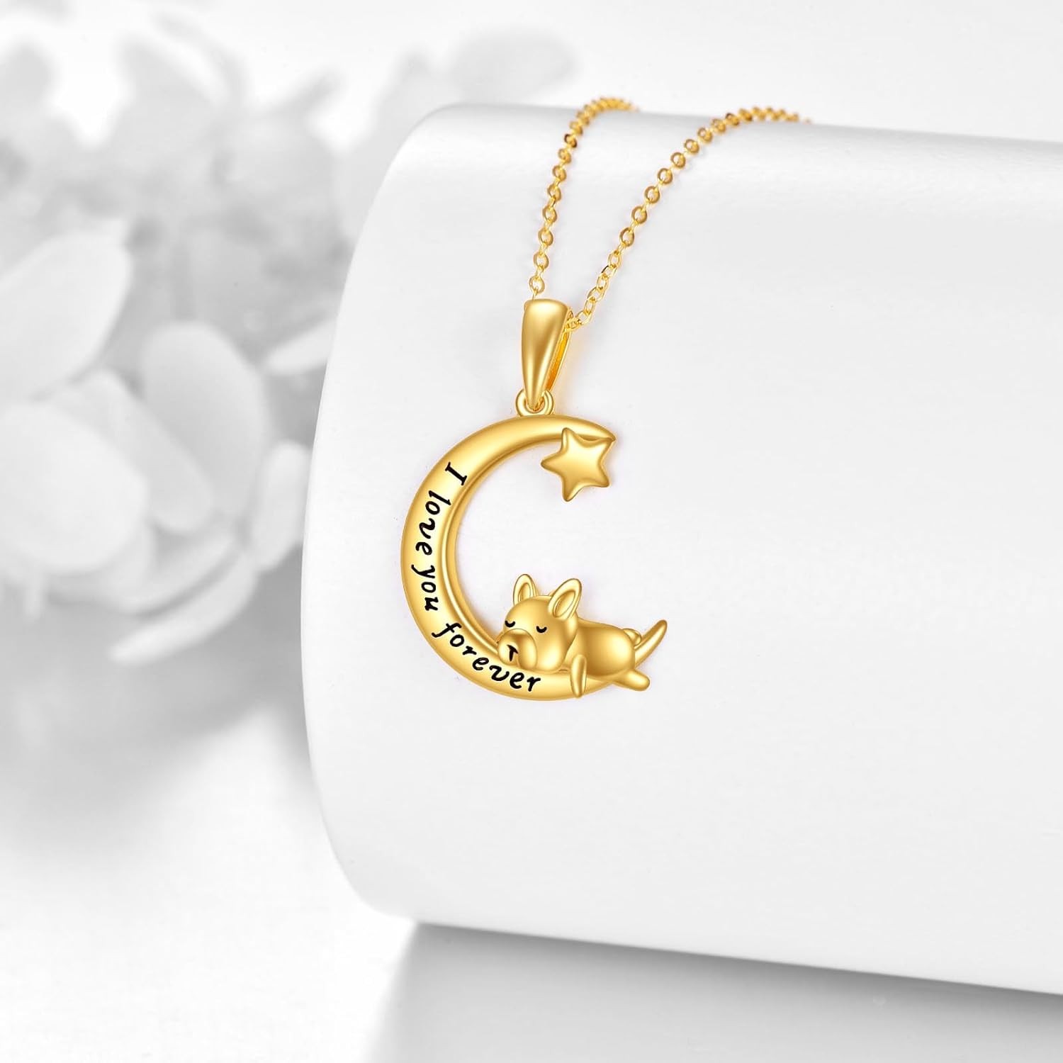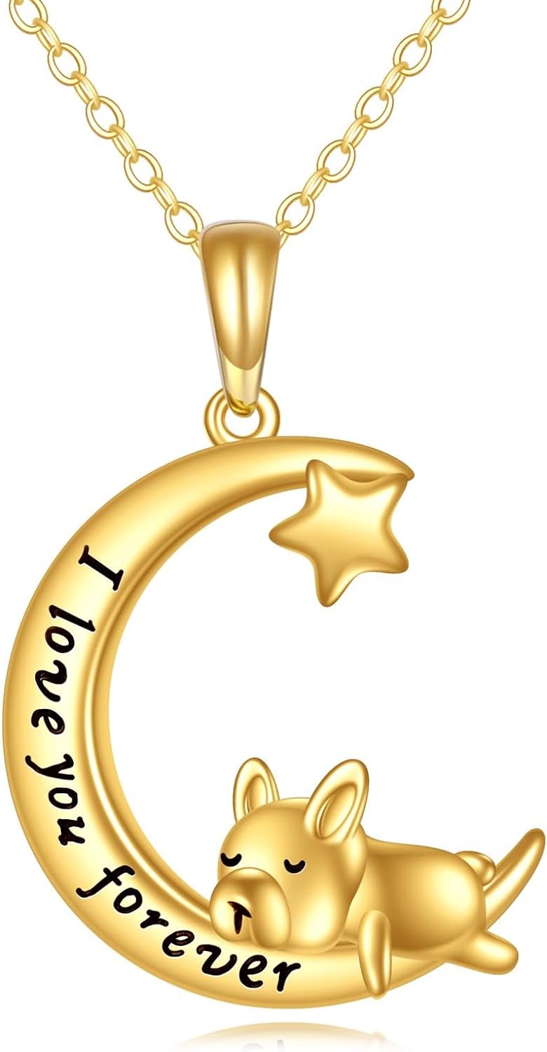 KECHO 14K Gold French Bulldog Necklace for Women, Heart Pendant Jewelry Birthday Gifts for Daughter Sister Teen Girls