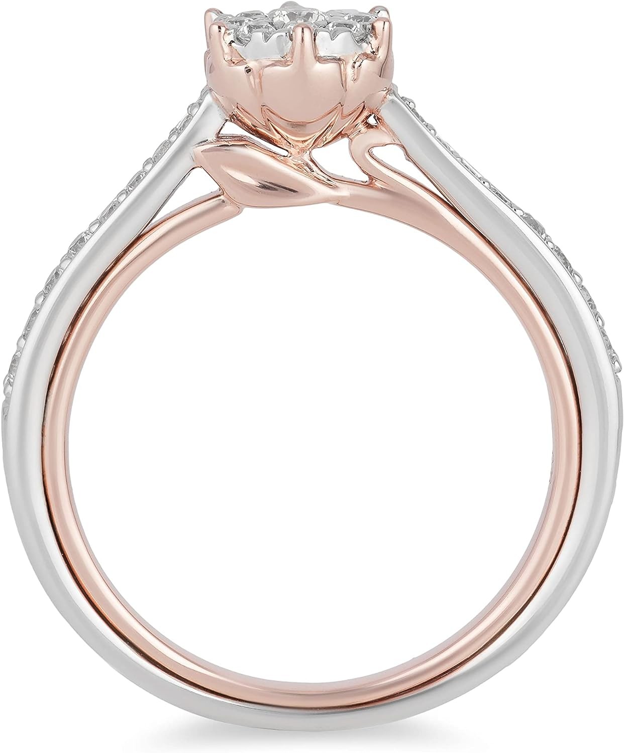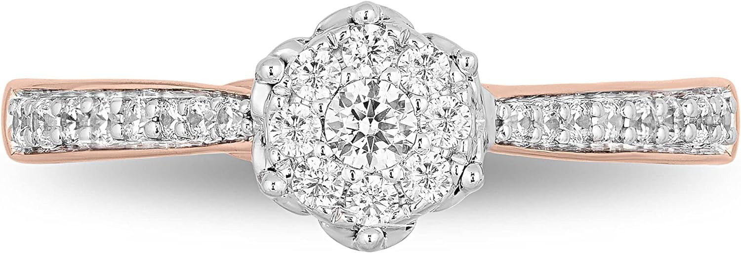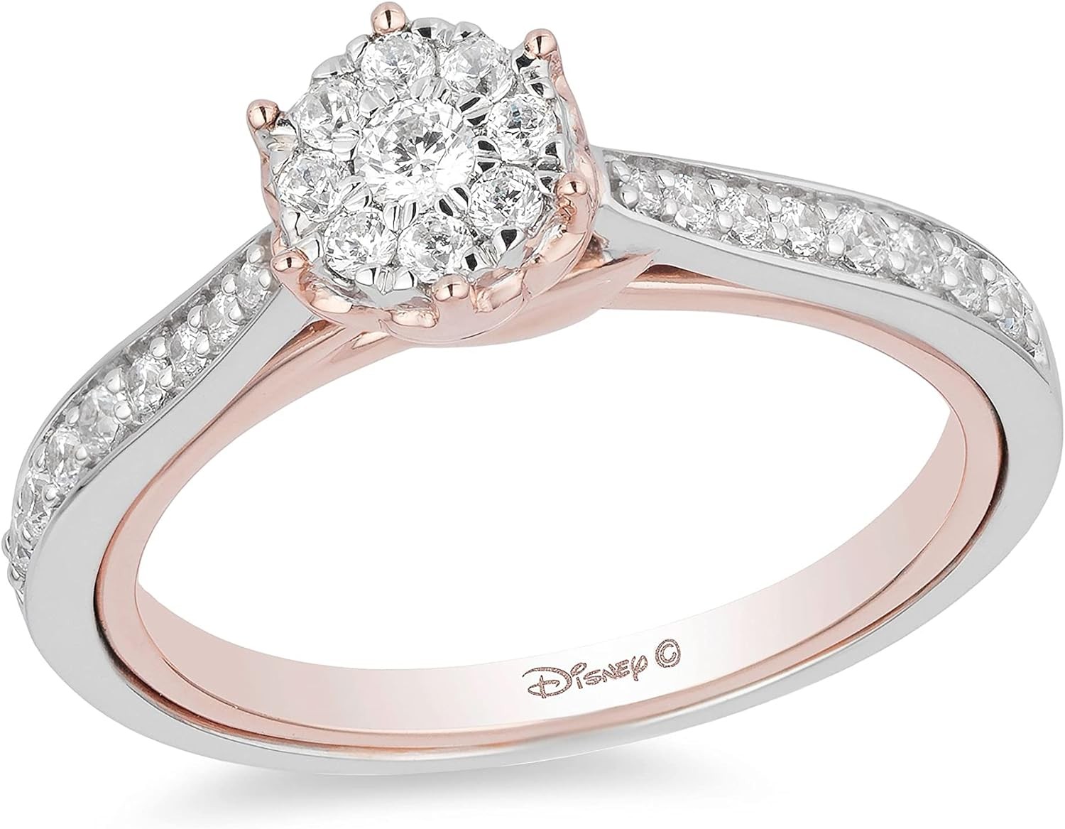 Jewelili Enchanted Disney Fine Jewelry 10K White Gold and Rose gold 1/3 Cttw Belle Composite Rose Engagement Ring Size