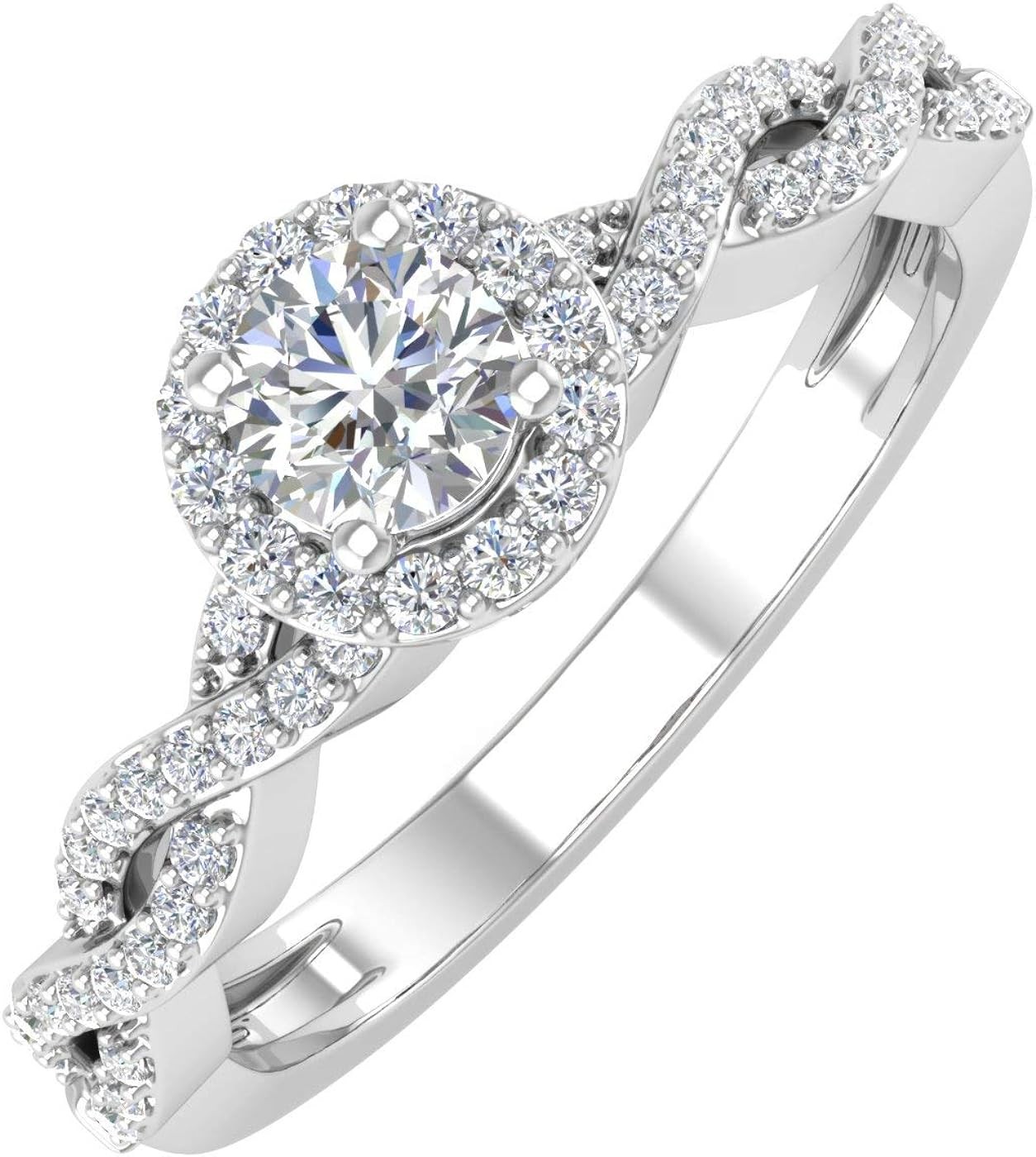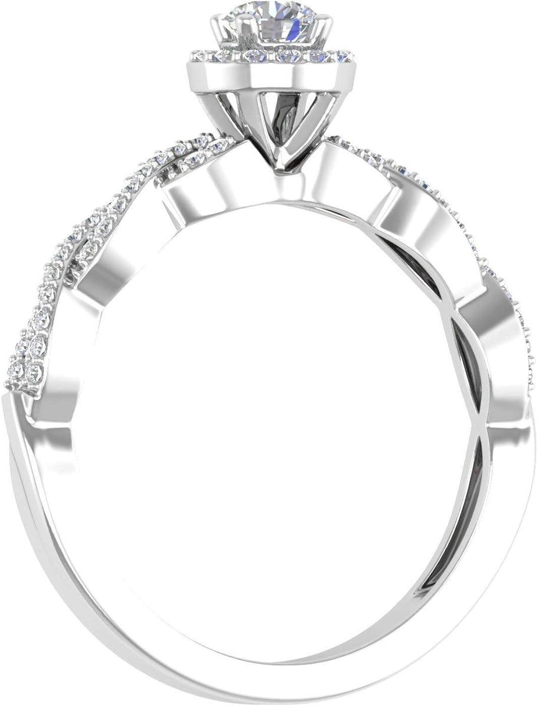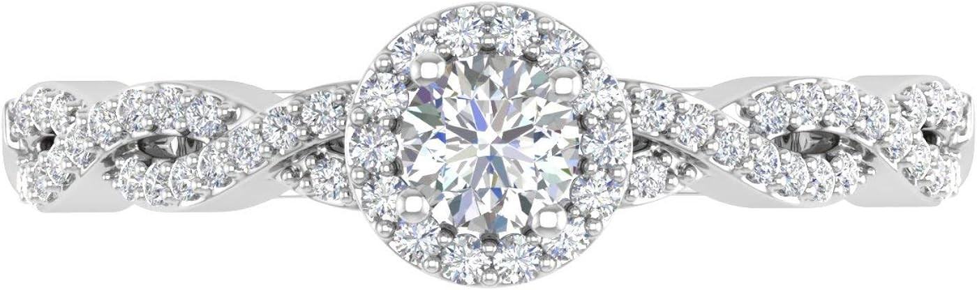 FINEROCK 14K Gold Round White Diamond Ladies Solitaire Swirl Halo Engagement Ring (0.40 Carat) (I1-I2 Clarity)