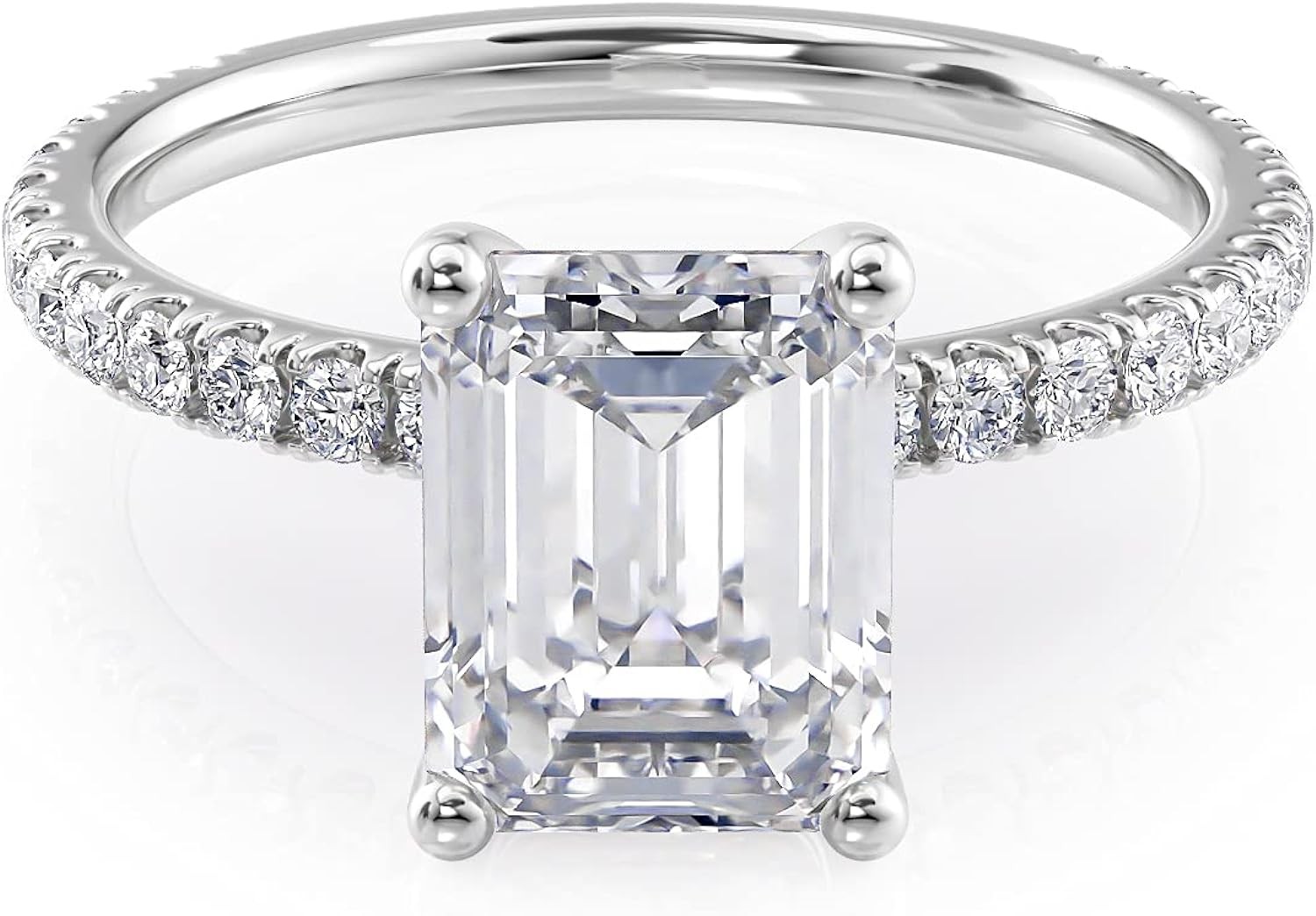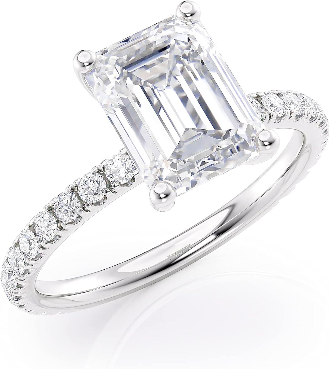 Beverly Hills Jewelers 2 Carat Emerald Cut Moissanite Engagement Ring for Women with 2/5 Carat Round Natural Diamond in 14k Gold (G-H/VS, G-H/SI, cttw, DEW) Anniversary Promise Ring Size 4 to 11
