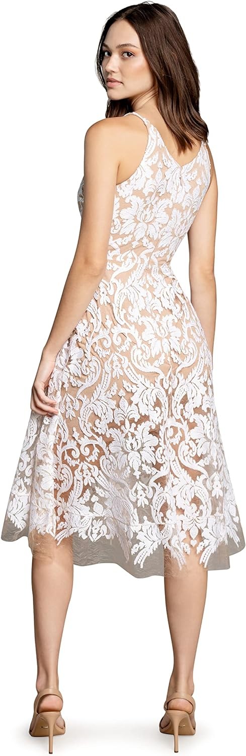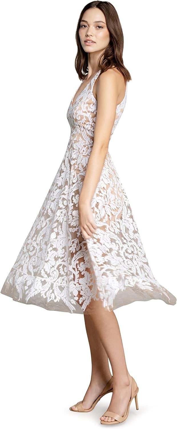 Dress the Population Women's Blair Plunging Fit and Flare Midi Dress