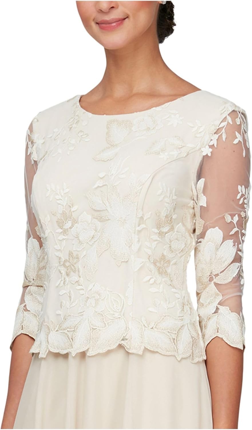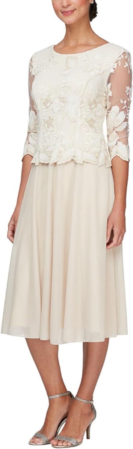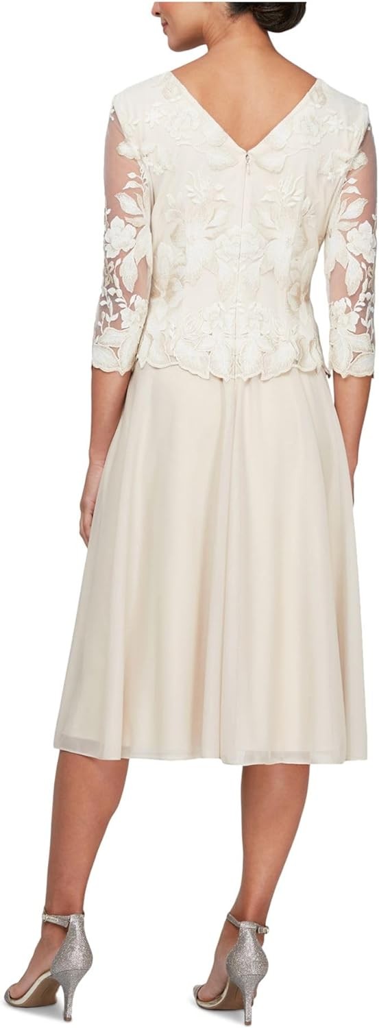 Alex Evenings Women's Tea Length Embroidered Bodice Mock Dress (Reg and Petite)
