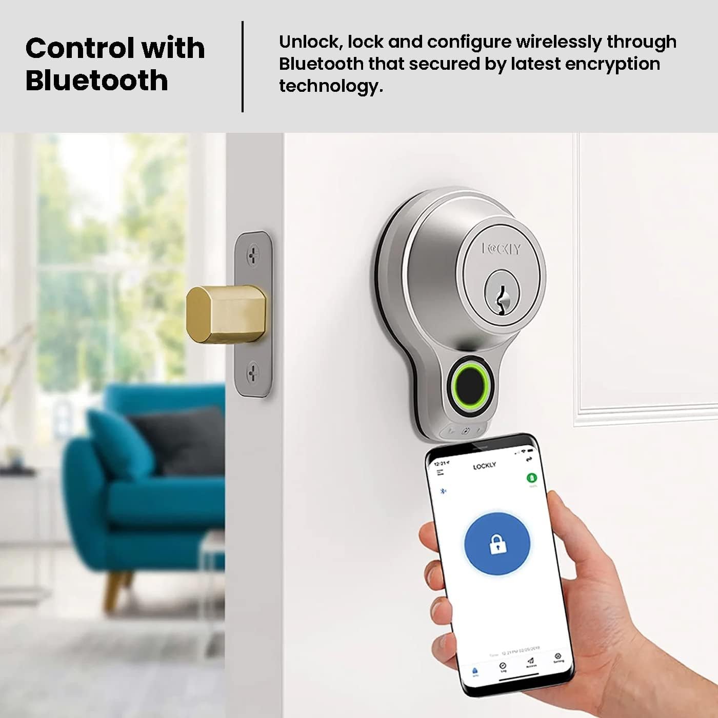 Lockly Flex Touch Smart Lock - Secure Keyless Entry with Fingerprint Recognition, Bluetooth Connectivity, and Smartphone Control - Enhanced Home Security Solution (PGD7YSN, Satin Nickel)