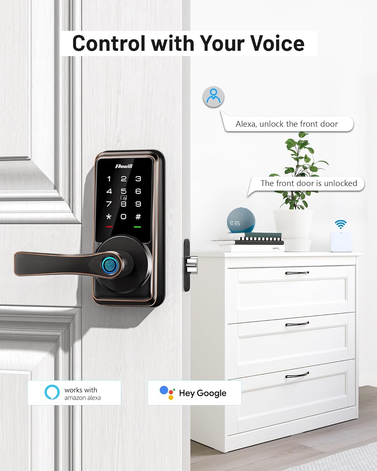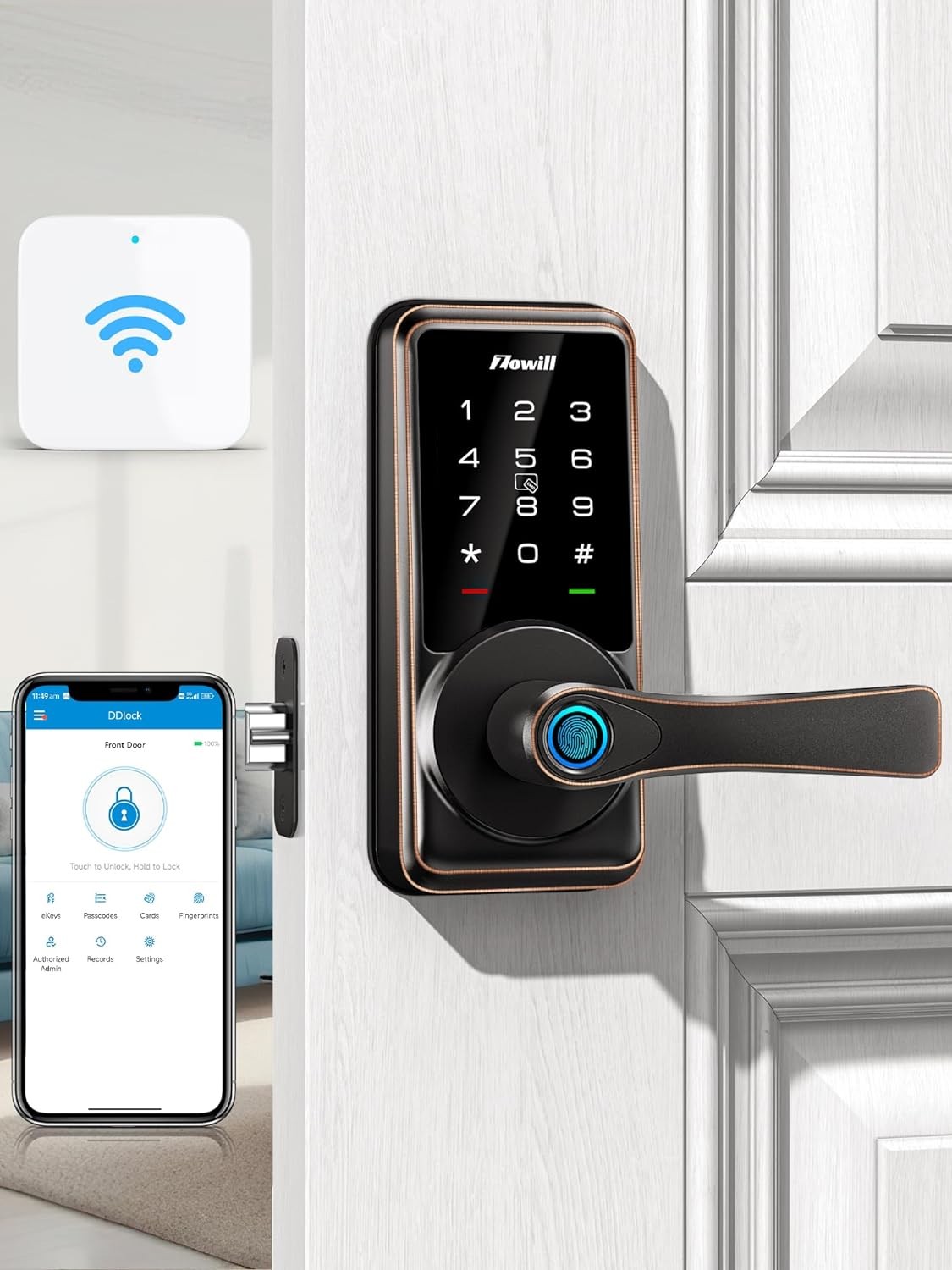 WiFi Door Lock, Bluetooth Smart Front Door Lock Work with APP, Alexa, Remotely Control, Keyless Entry Door Lock with Handle, Electronic Digital Lock with Keypad, Auto-Lock(Included G2 Gateway)