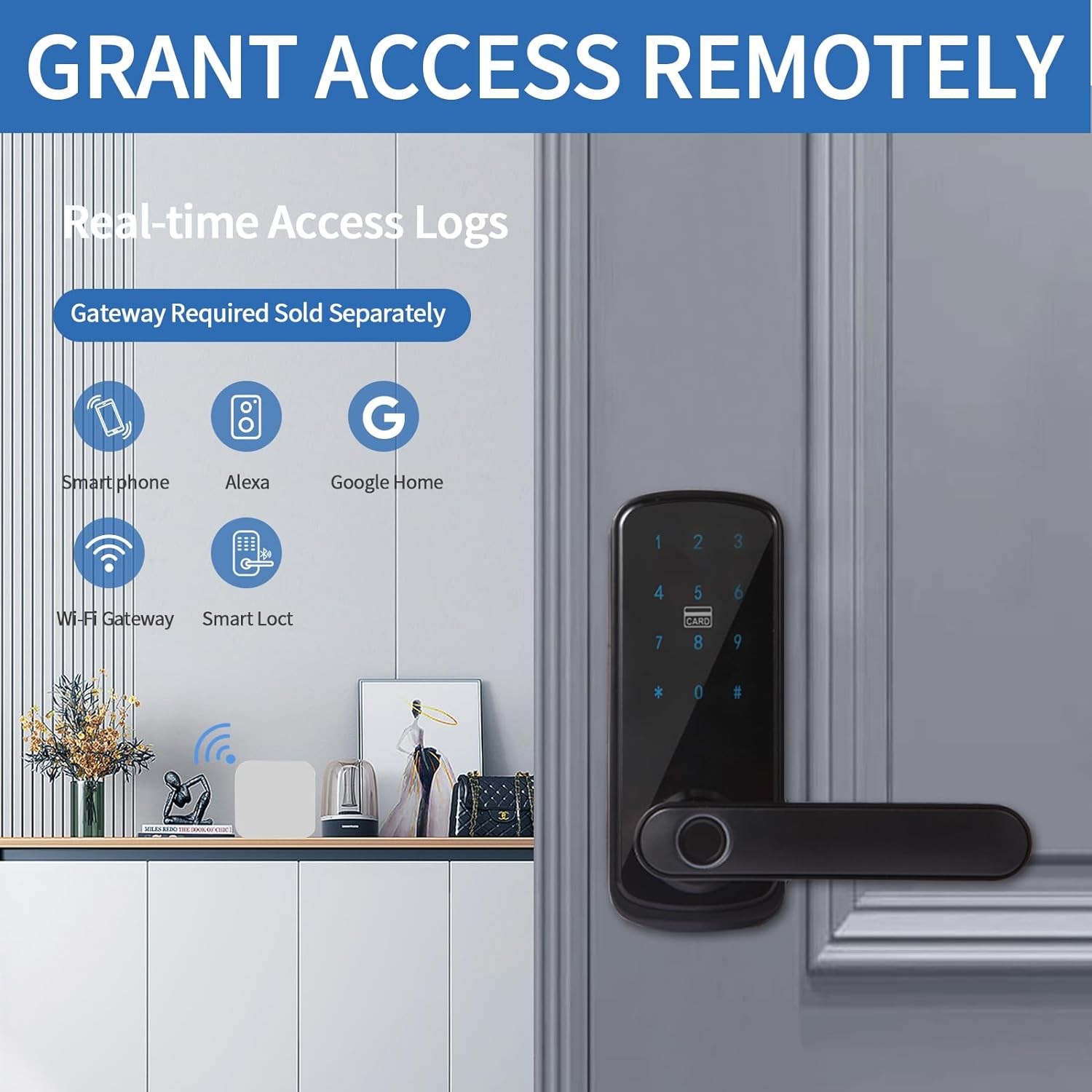 Keypad door lock with handle connects to Alexa and Google home for voice-controlled unlocking (gateway required)