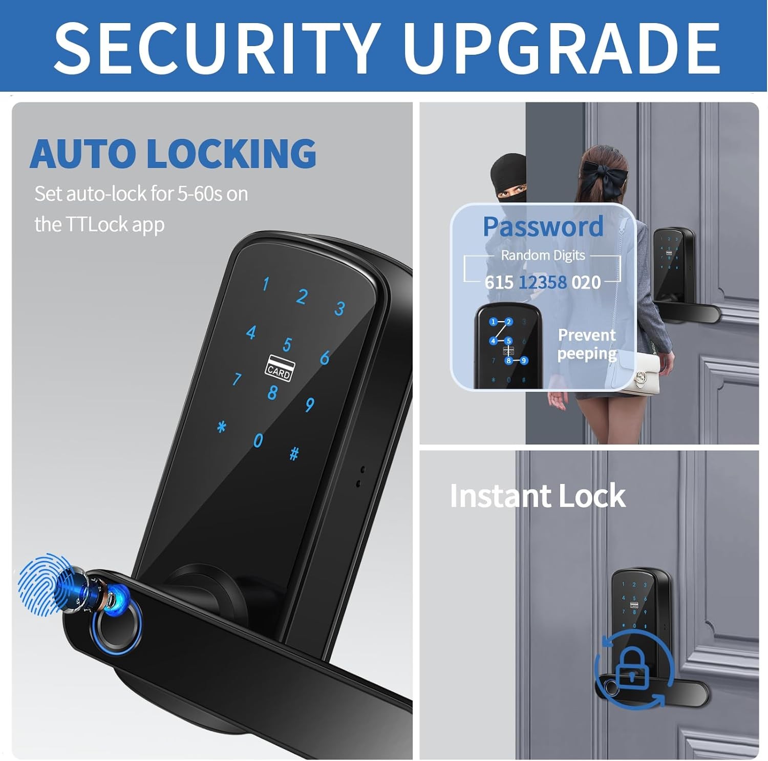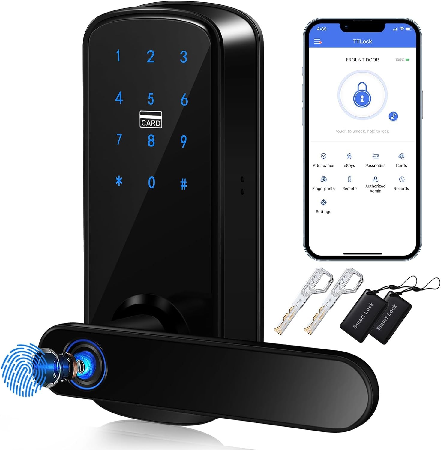 Smart Fingerprint Door Lock,HyBaiS Smartlock Keyless Front Door,Keypad Lock with Handle,Door Lock Code,Digital IC Card Lock,WiFi & APP Control Lock,Biometric Door Lock for Hotel Apartment Rental